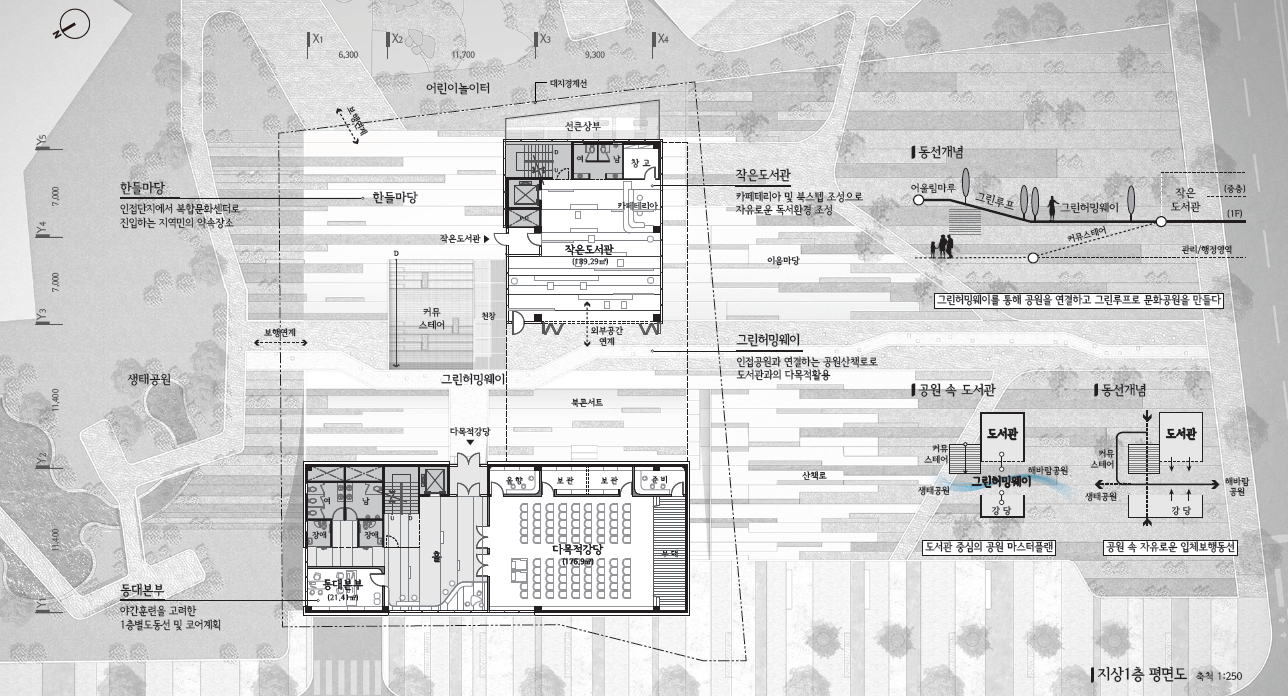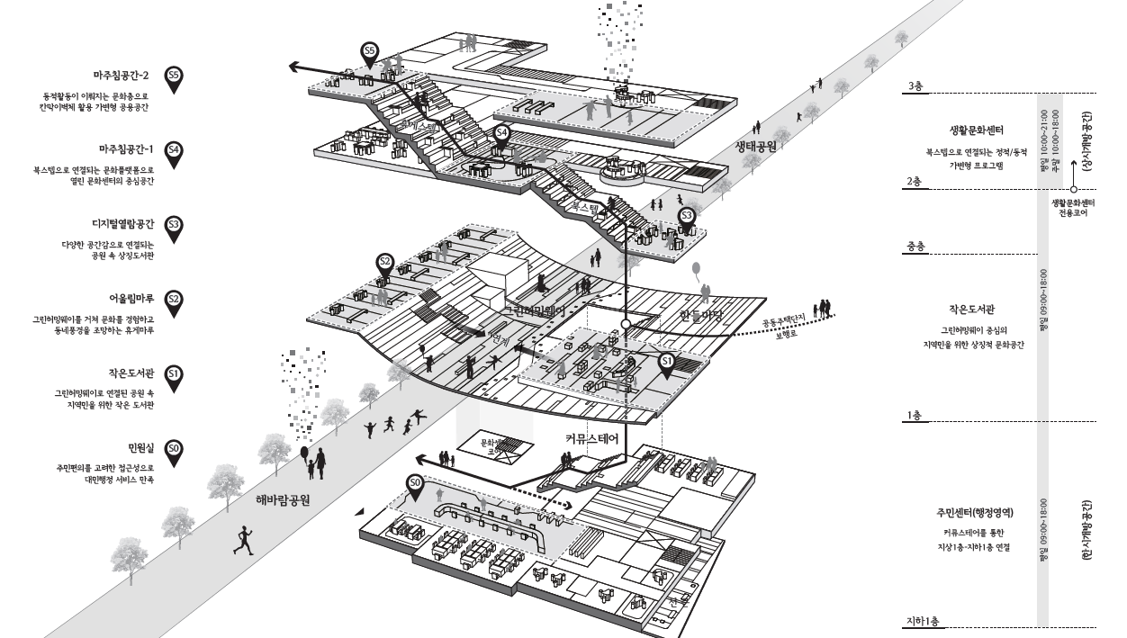 기존 공원의 녹지 환경을 유지하는 공간 계획으로 주민의 일상에 새로운 생활문화공간을 제안합니다.