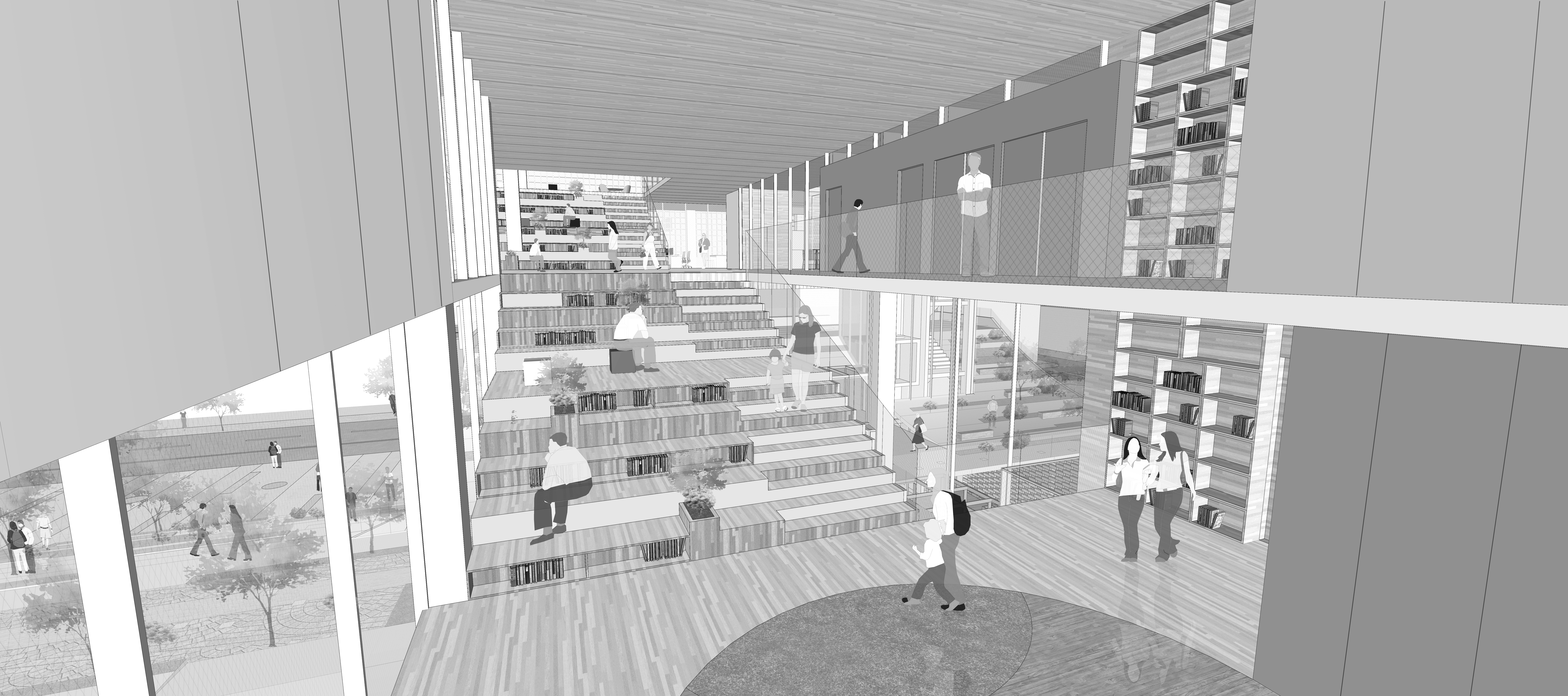 멀리 백련산에서 사업부지까지 이어지는 녹지의 통경축은 도심의 상징적인 공간입니다. 이곳에 응암동 주민의 일상을 새롭게 할 문화, 행정 통합센터 '그린루프'를 제안합니다. '그린루프'는 사업부지의 접해 있는 해바람공원과 이어져 주민의 일상을 자연으로 감싸는 도심 속의 '휴식처'입니다. 작은도서관의 아이들과 가족의 피크닉, 친구와의 약속과 북콘서트 등 문화를 공유하는 장소입니다.