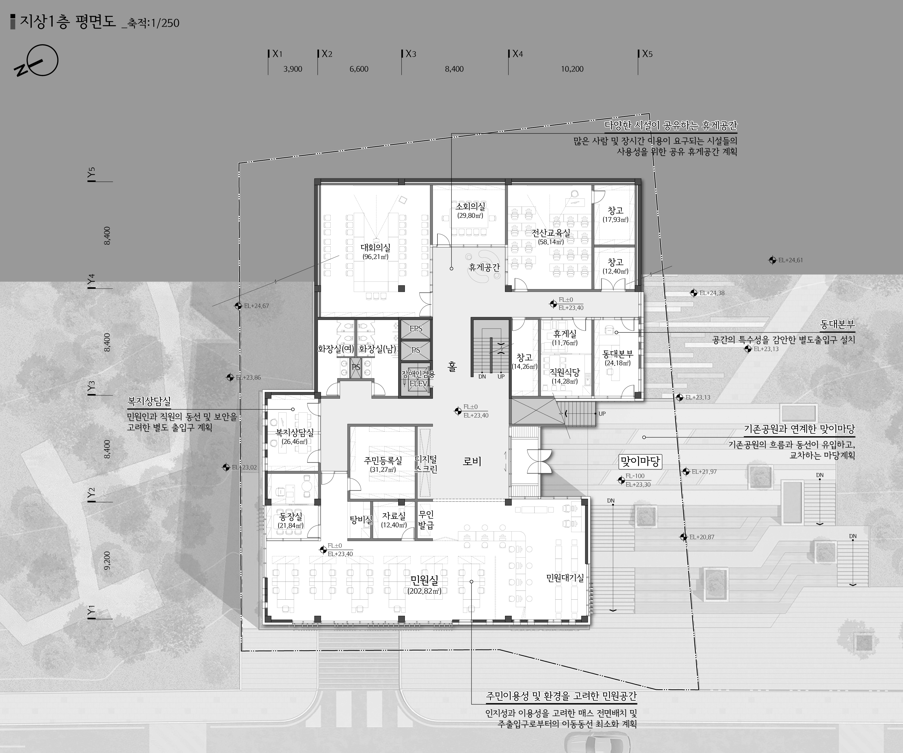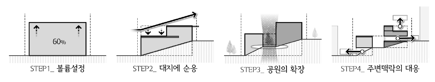 기존 소공원의 산책로와 다양한 휴식공간들을 건물로 끌어들이고 확장시키며 응암2동의 새로운 이야기를 이어갑니다.