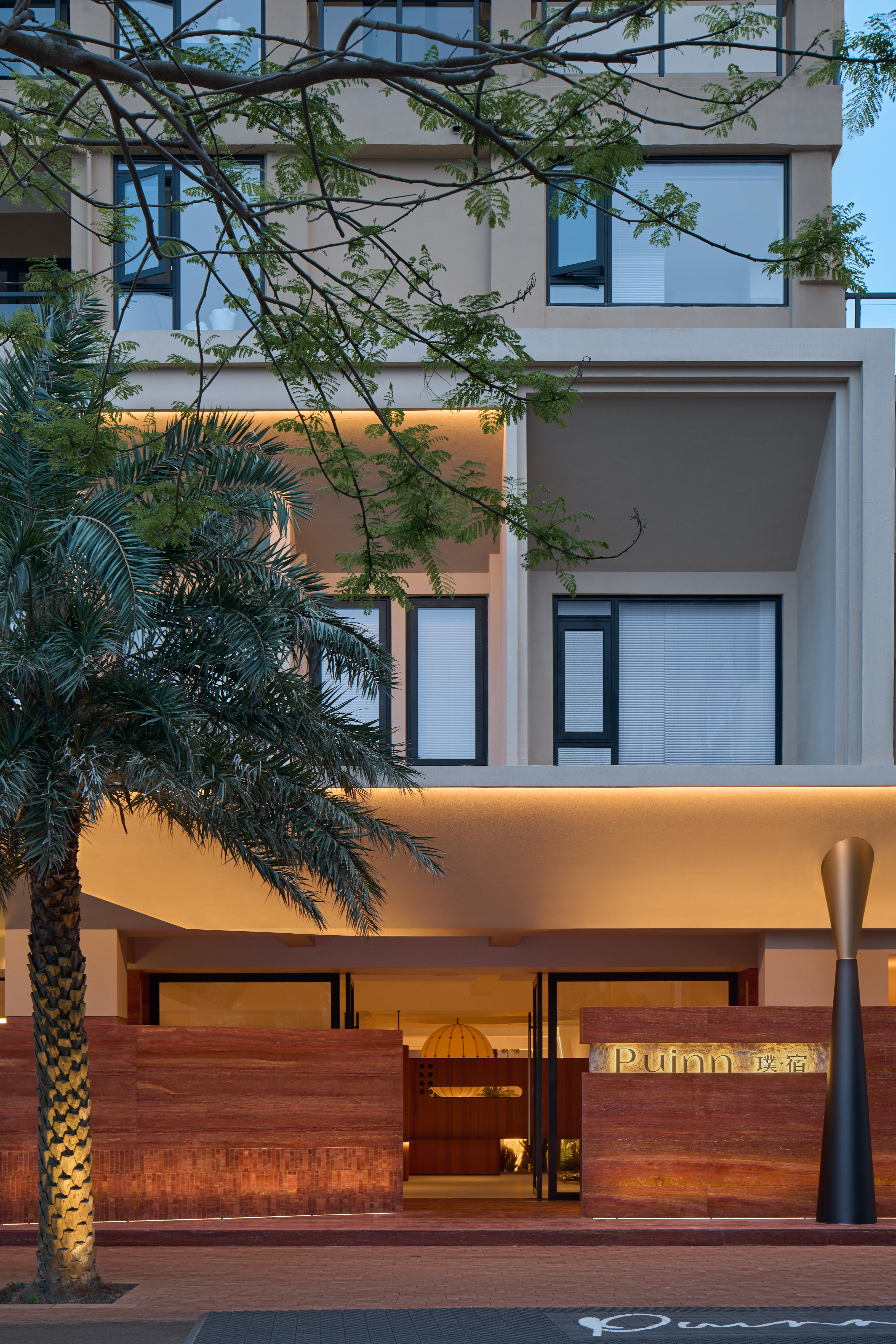 On Weizhou Island in Guangxi, the youngest volcanic island in China, we take “oasis” as the theme and create Puinn Hotel that not only reflects the unique geology of the volcanic island but also provides a secluded space for healing. The red natural marble of the hotel’s exterior, indicating the flowing lava, poses a striking contrast with the surrounding natural environment. This touch of passion ignites every guest’s eye and mood.