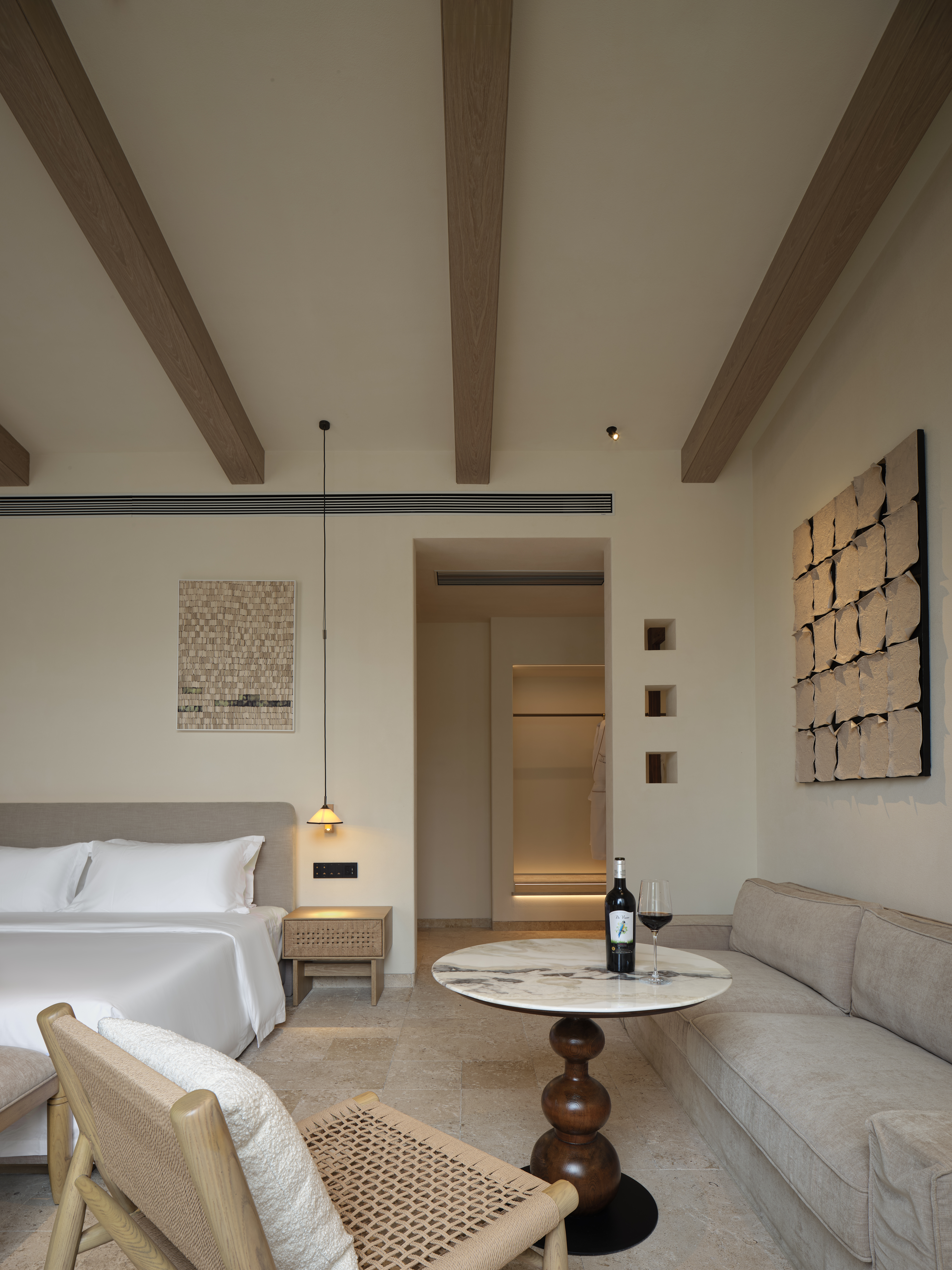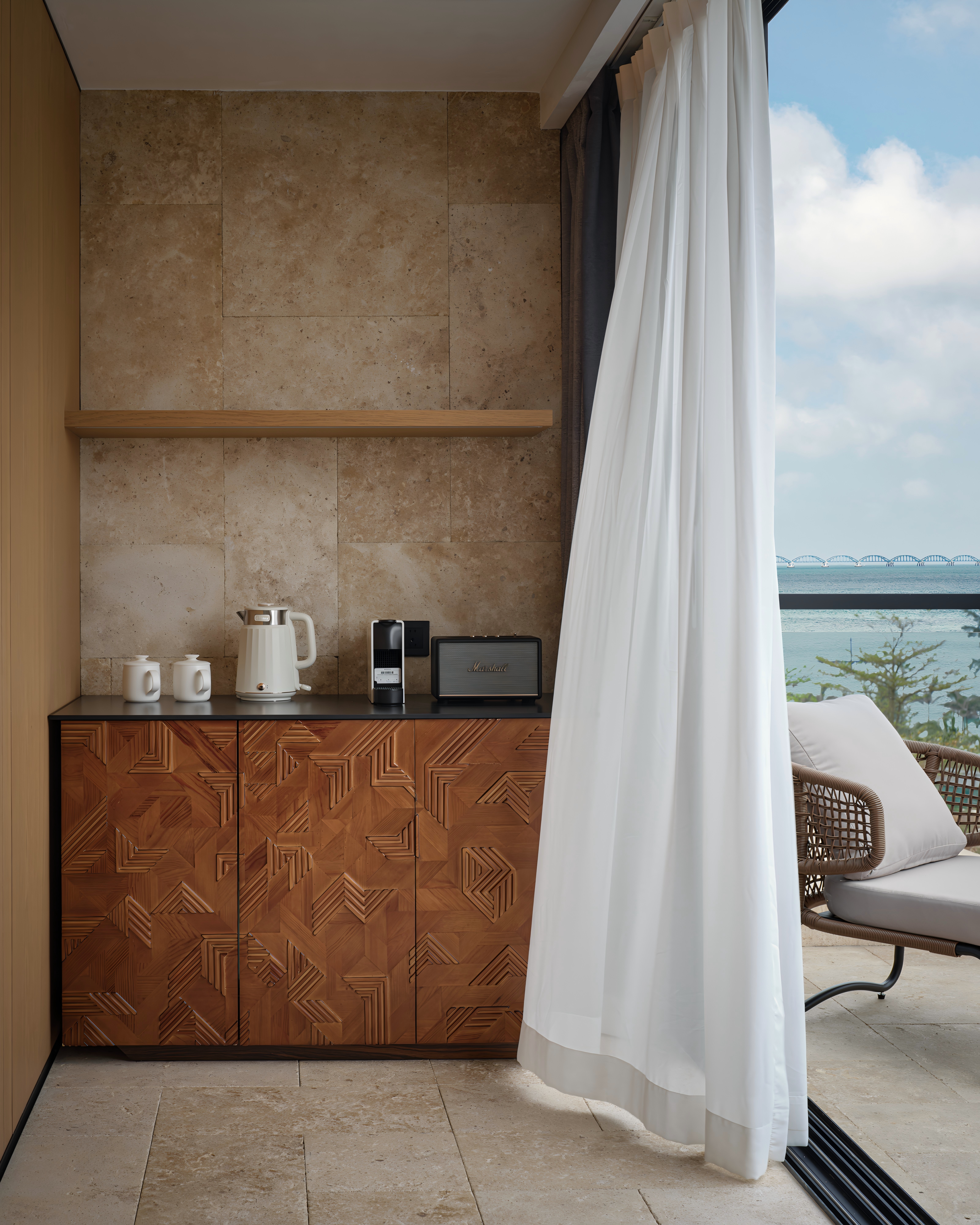 We believe the key to hotel design lies in creating a sense of novelty, offering a temporary dream for the guests from afar. We have meticulously designed various styles of guest rooms to satisfy different accommodation needs, with each style carrying unique sentiments and aesthetic pursuits. The Wabi-sabi style rooms, focusing on simplicity and nostalgia, create a tranquil and healing living environment with minimalist spaces and textured soft furnishings. Mid-century style rooms demonstrate an elegance tested by time, subtly revealing a modern-retro charm with its simple lines, high-quality leather furniture and fine wall treatments. The extensive use of luxurious stones creates a visually zingy hit of luxury while the high-quality details embody a low-key “Old Money”style. The black-and-white style rooms perfectly interpret modern design techniques featuring a minimalist and elegant use of the contrasting colors black and white.