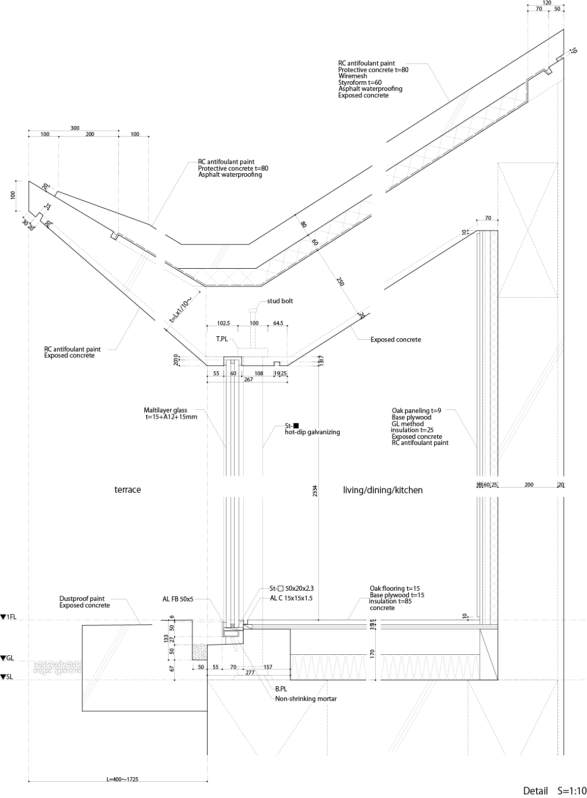 This is a project to rebuild an old house in Muko city, in Kyoto prefecture. Farmland and bamboo forests spread surrounding the site. Since ancient times the area has been delimited by stone walls and dotted with farm-style habitations, each consisting of