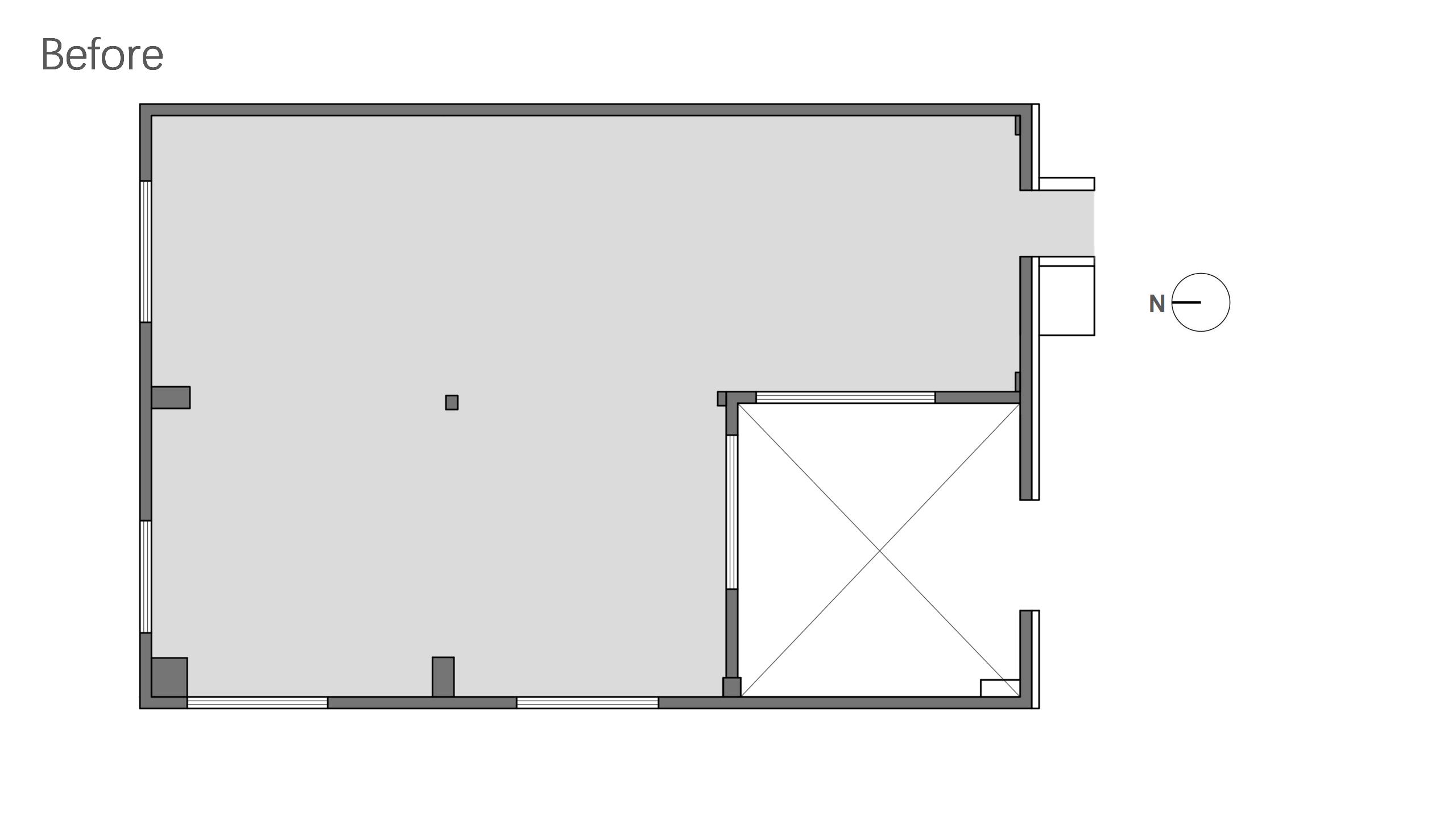 The gray space at the entrance, combined with the stepping stones, slows the pace of entry, allowing visitors to pause and gather themselves before fully entering. This area functions as a transitional space, intentionally creating a separation between the interior and exterior themes. As a result, it enhances both the privacy and the sense of layering within the space.