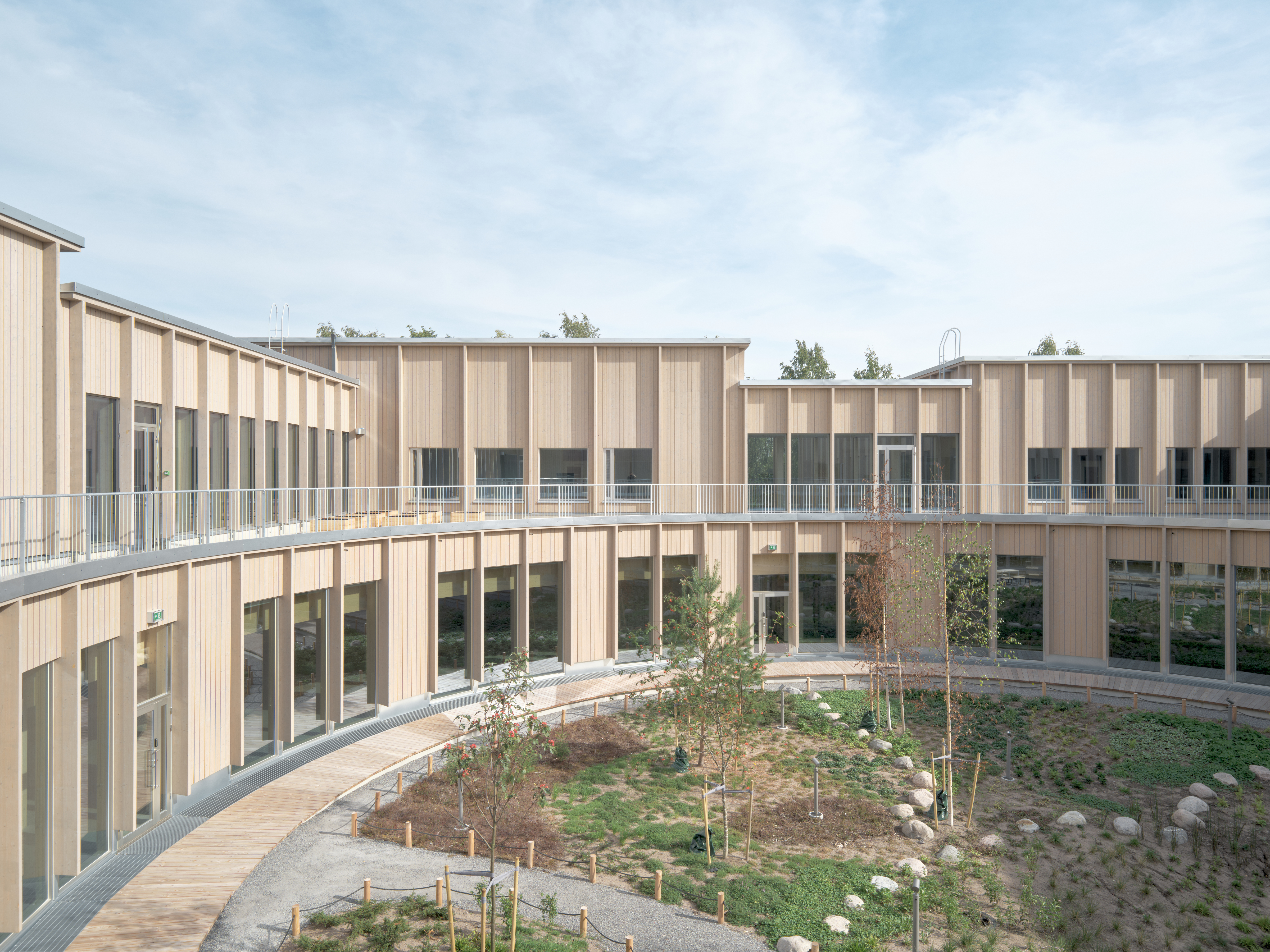 Maatulli School and Kindergarten is one of Helsinki’s first mass timber schools. The school’s design is informed by research indicating that educational institutions built from wood and closely connected to nature have a