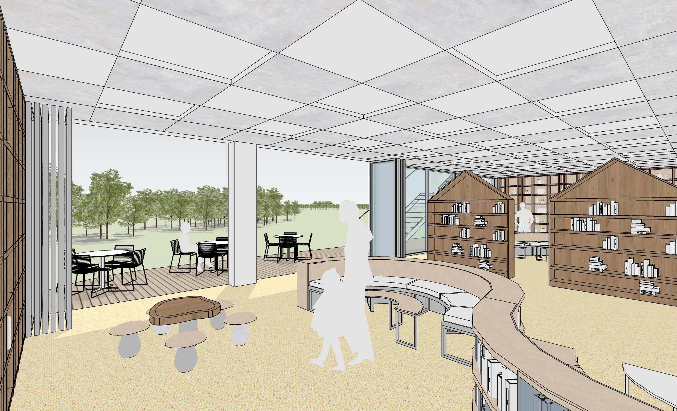 한정적인 내부공간의 제약을 뛰어넘고자 공간들이 외부로 확장되도록 계획함으로써 보다 많은 사람들이 모일수 있고, 보다 다양한 활동들이 이루어지도록 가능성을 열어두고자 하였다.