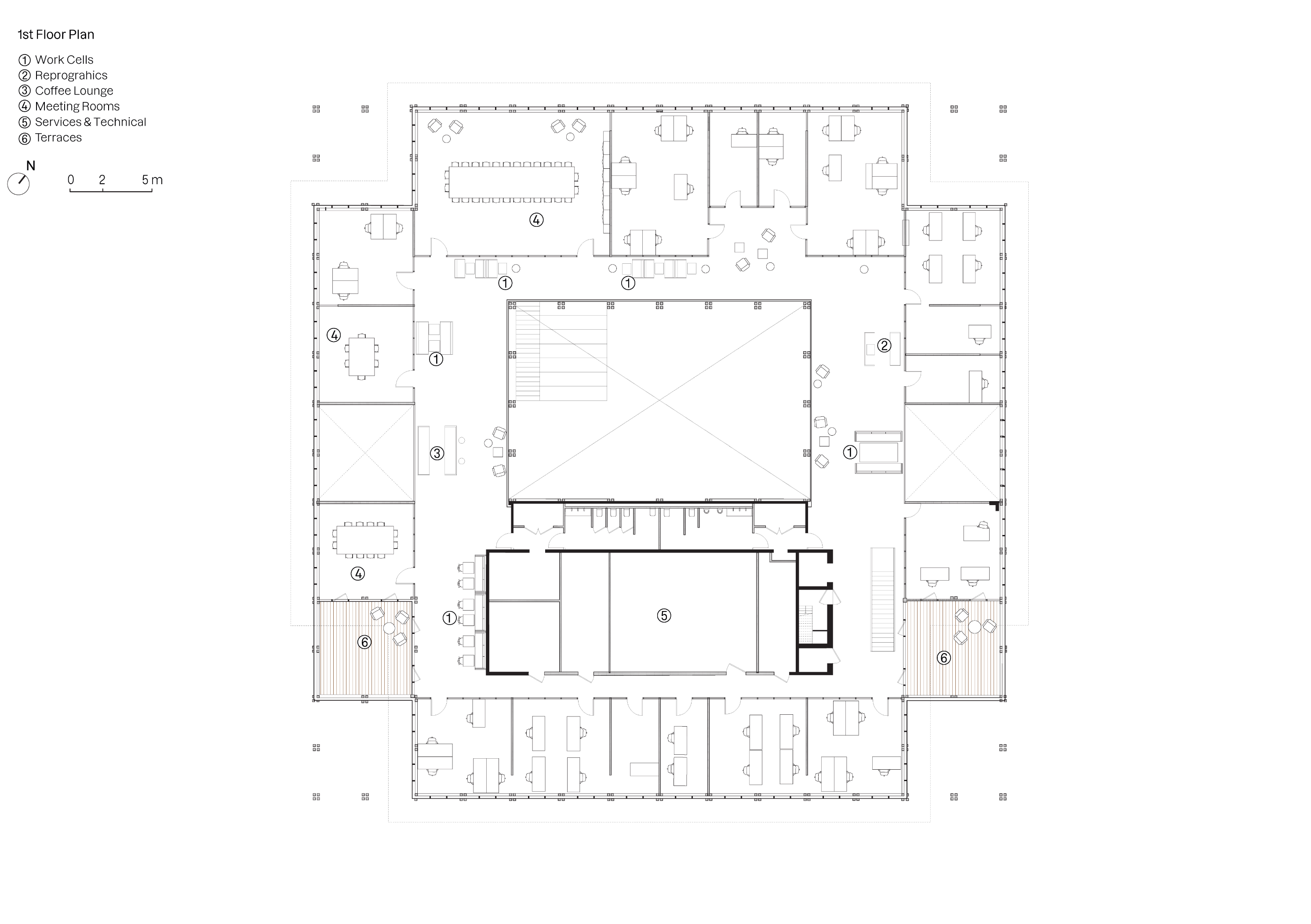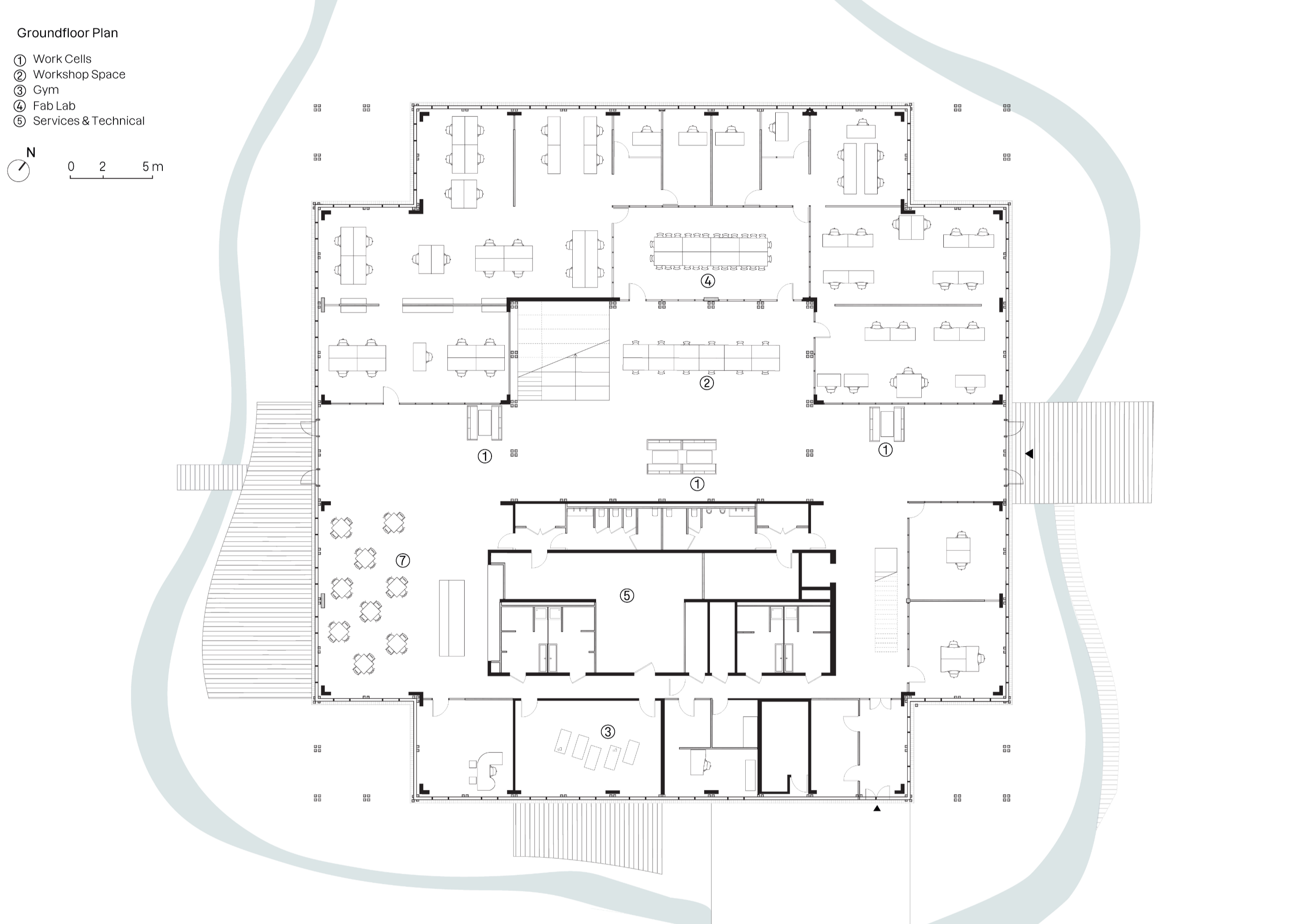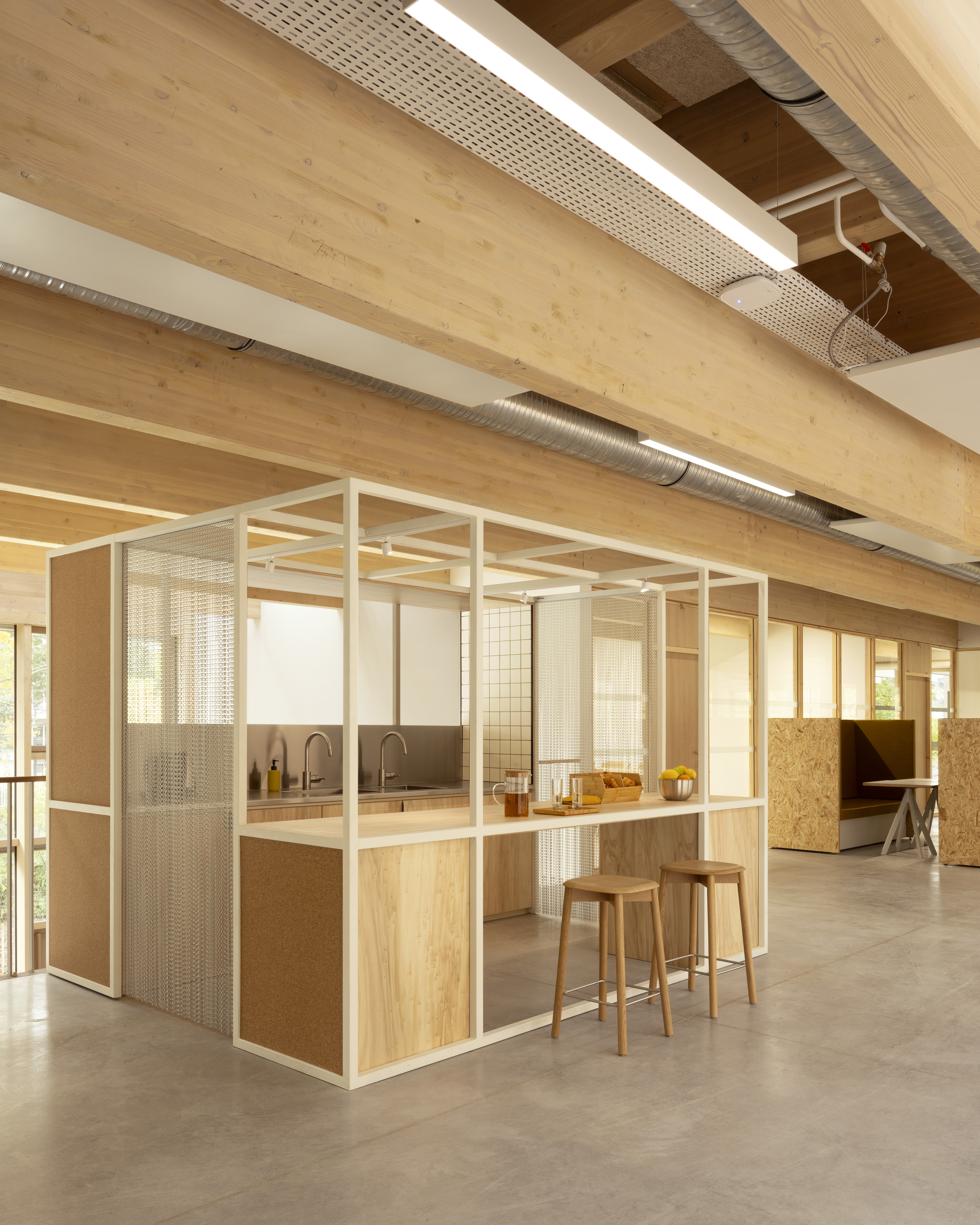기하학적이고 가변적인 건축물은 구조를 통해 자연광이 유입되며 다양한 프로그램에 따라 조정 가능하다. 중앙 아트리움을 중심으로 두 개의 층으로 구성되어 있으며, 계단형 홀은 프레젠테이션, 컨퍼런스 등 다양한 행사를 지원한다. 내부에는 맞춤형의 공간(Micro - architectures)이 배치되어 회의실, 복사실, 커피 라운지의 역할을 한다. 건축가는 예비 사용자들과 긴밀히 협력하여 설계를 진행하였는데, 구조적인 가구를 자유롭게 구성하고 라빌레트 팀에서 제작한 가구를 설치하였다.