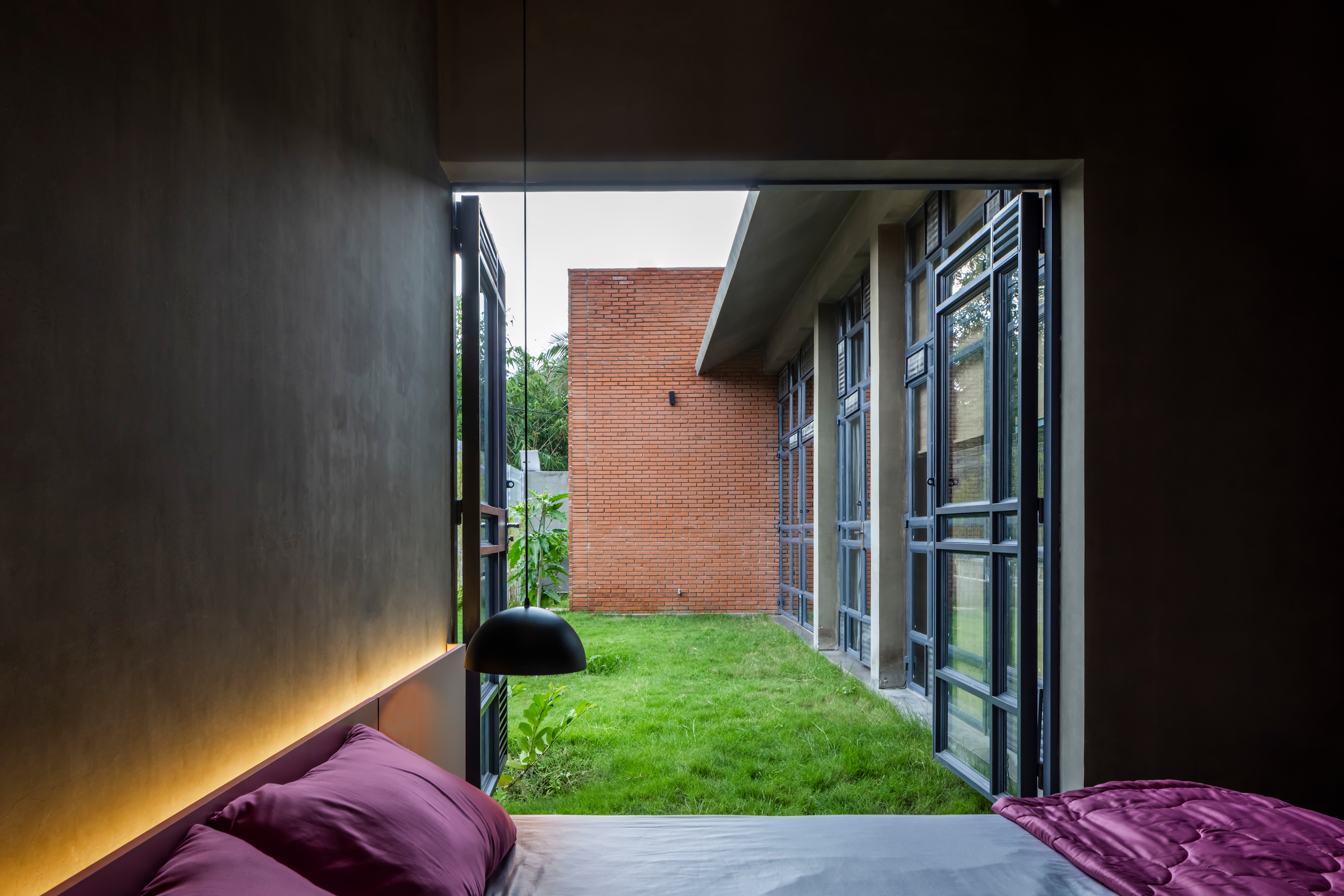 Nam house is situated in a minor alley, given by their grandparents throughout many generations traditionally, hence their neighborhoods are close relatives. To be more specific, the abutting house belong to the owner’s mother and the other adjoining land area is also the property of their relatives. Thus, the owner’s desire is to connect their home with the surroundings environment, especially their mother’s house beside. Consequently, the designing process comes to a solution in which the building would be split into 3 distinctive blocks, with 2 soilid blocks at front and back of the house connected by a void block in between.