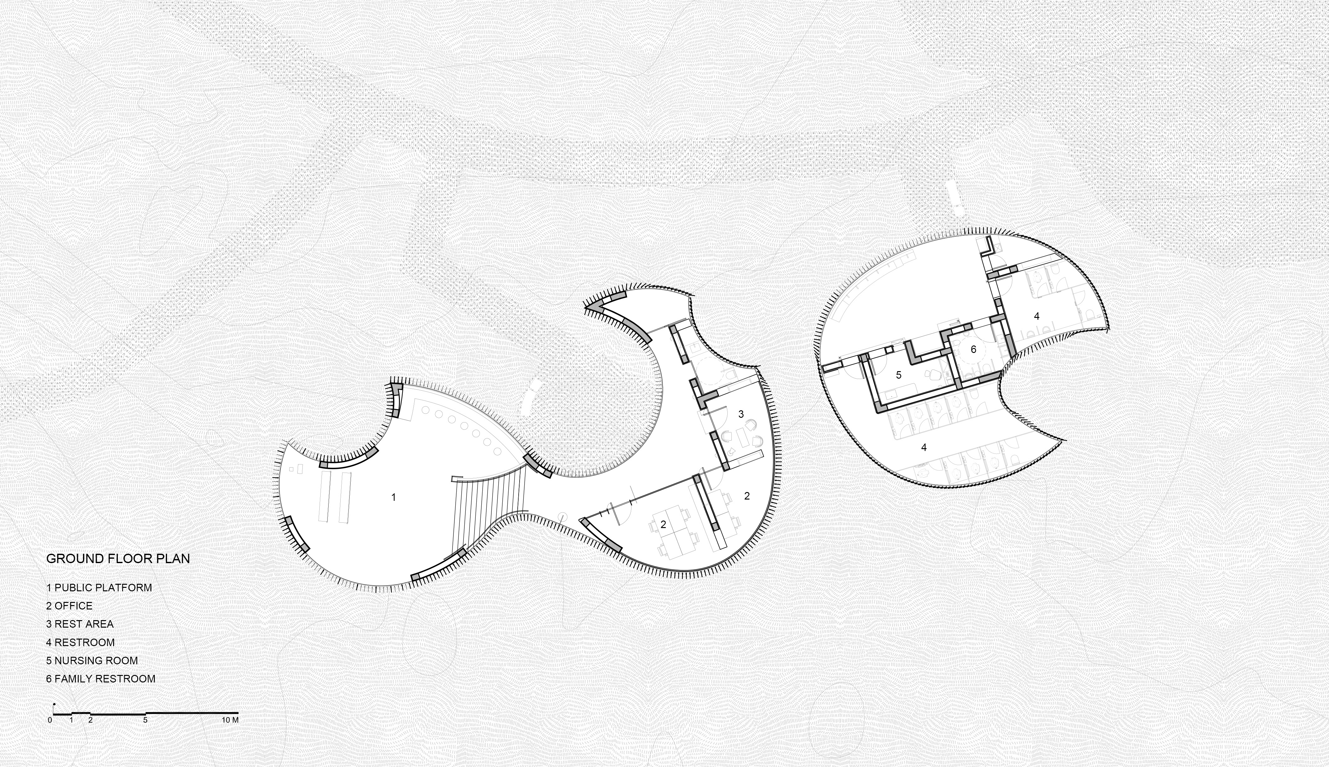 The forest’s untouched nature presents a challenge for the architects: how to incorporate essential public-service facilities into the park while preserving the original natural environment?
