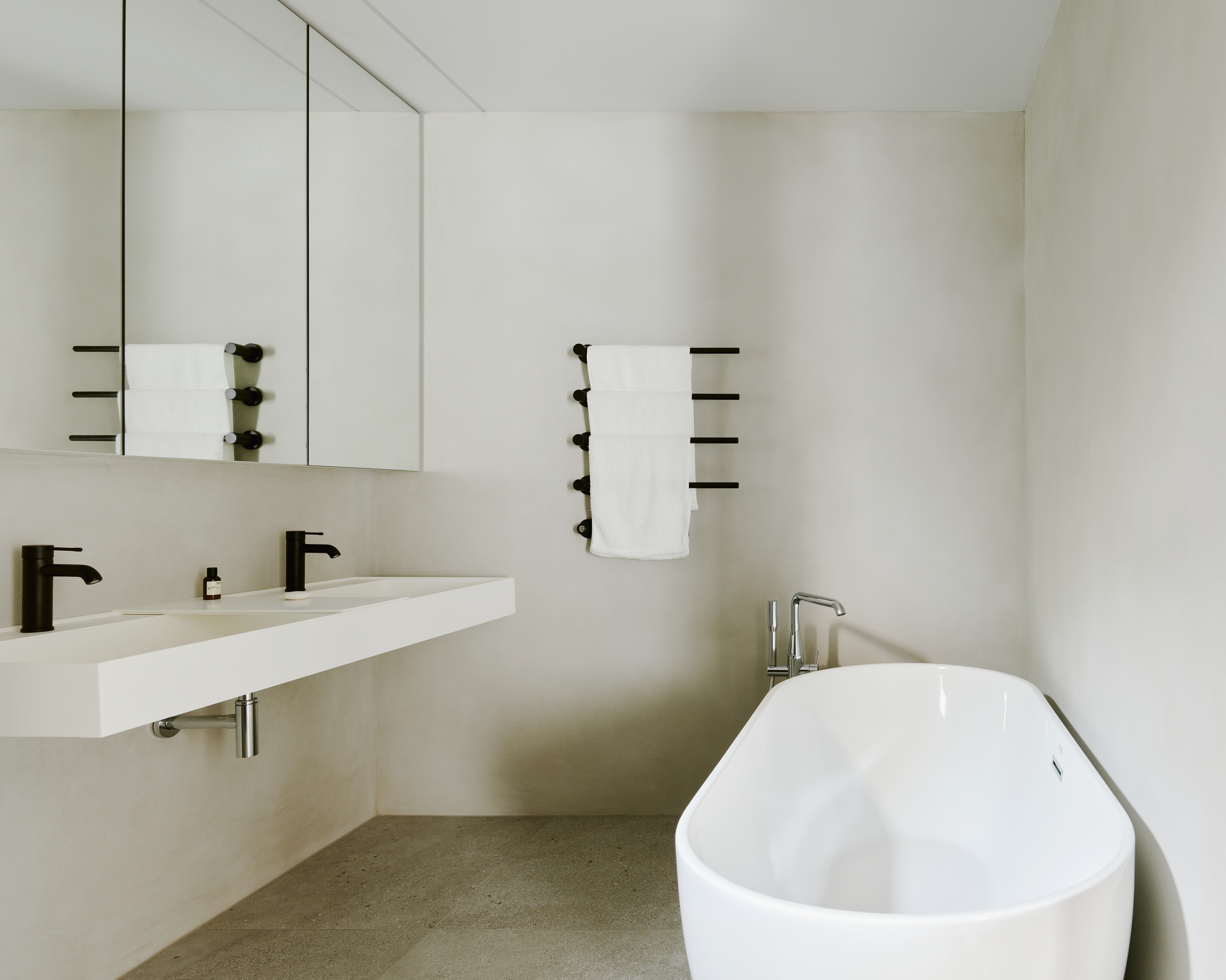 The whole project consists of simplicity and elegance in depth. The overall gray tone background sets a clear and light tone, and the use of the texture and color of materials highlights the interior layout and structural characteristics. That finish materials used in each space are intentionally slightly different, but all implement a simple temperament.
