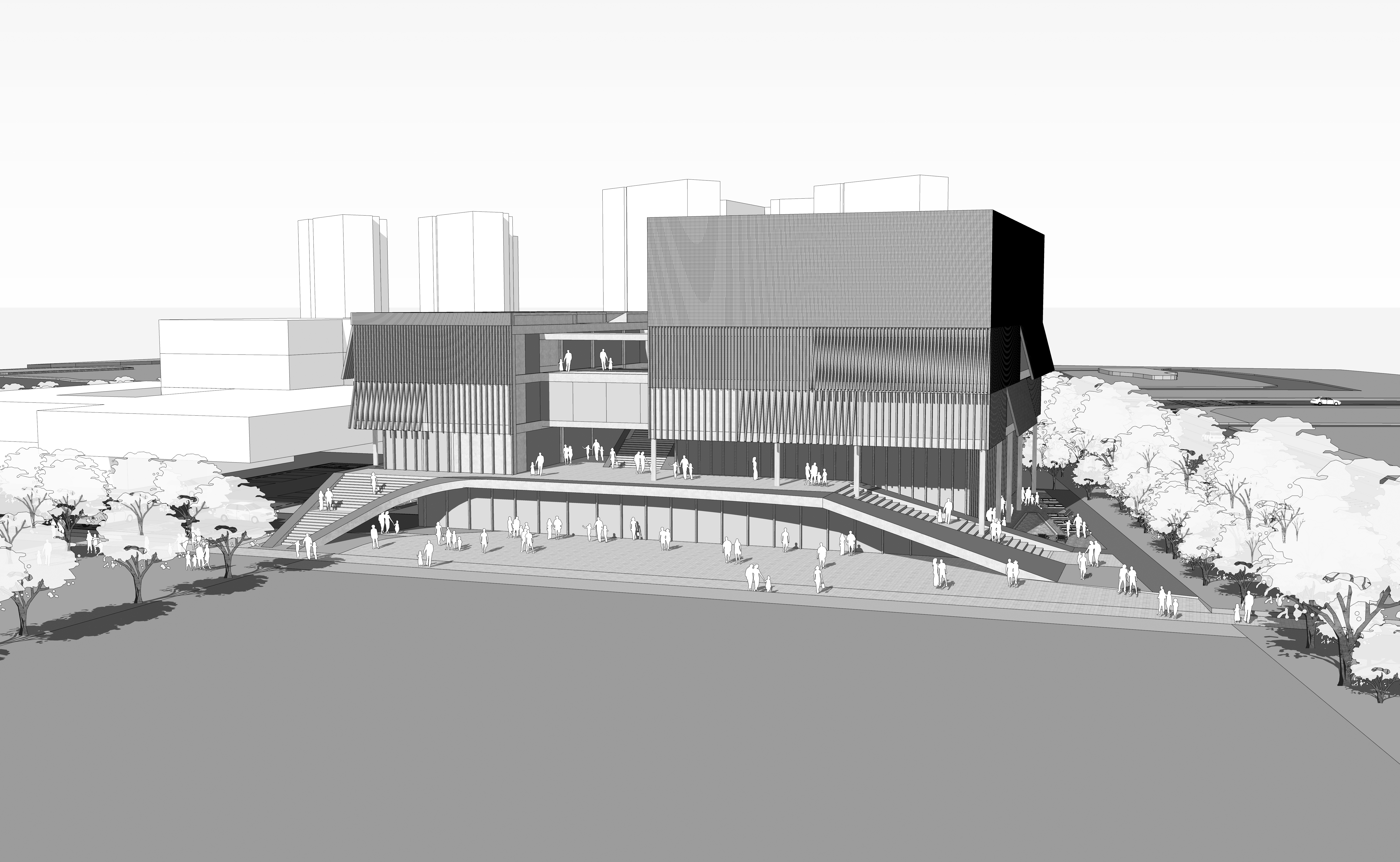 보행가로와 광장의 휴먼스케일을 위해 상층부 매스를 셋백하였고, 광장을 2층까지 입체화하여 이벤트 공간이나 야외공연장 등 다양한 액티비티 공간으로 활용할 수 있게 하였습니다. 수변공원, 어린이공원에서 입체광장과 공유마당으로 연속되는 외부공간이 내부공간으로 확장되어 보다 유연하고 자연친화적인 공간으로 계획하였습니다.