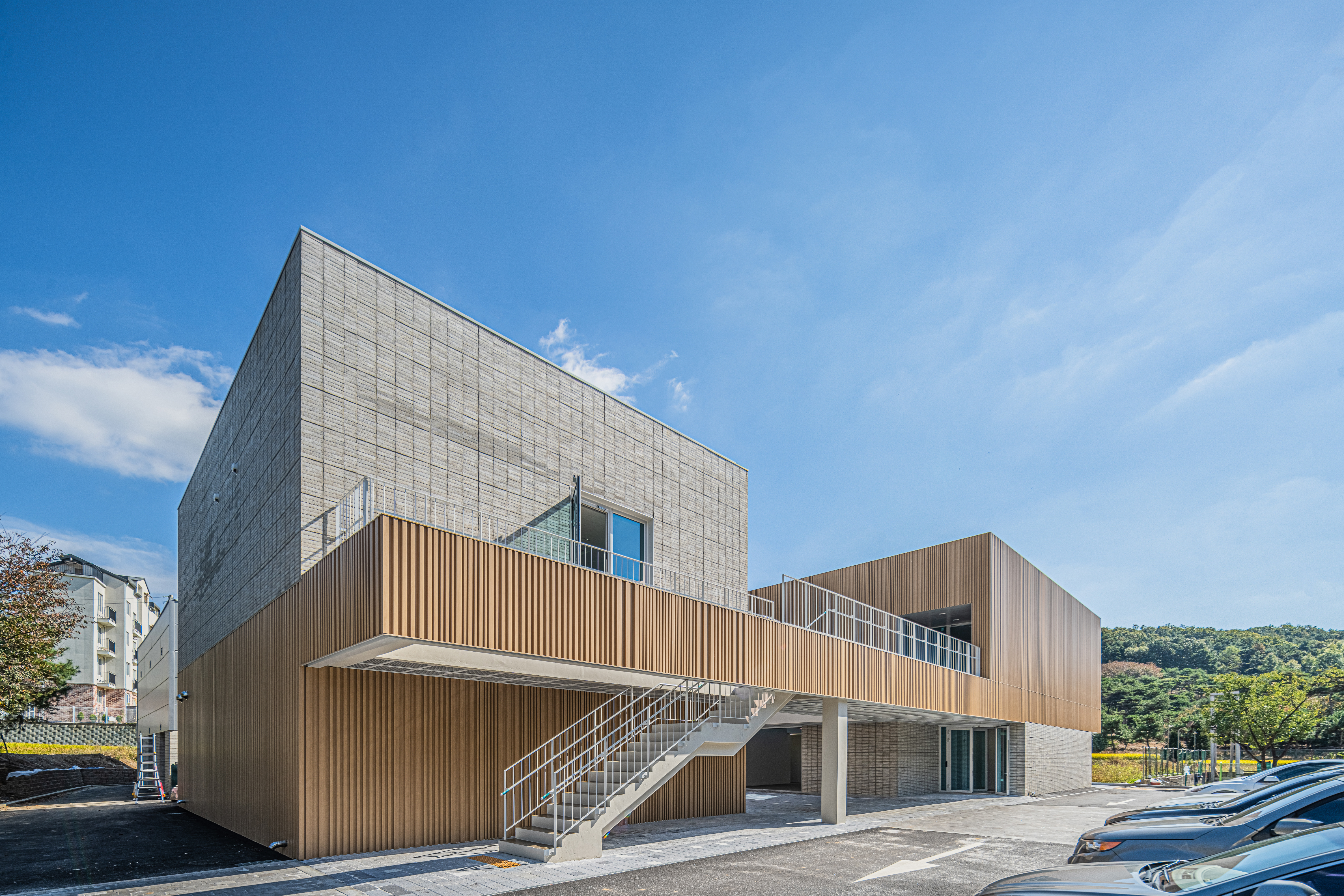 혜음로에서 행정복지센터의 열린마당까지 자연스럽게 이어지는 동선, 내부의 프로그램의 확장을 가능하게 하는 마당 공간은 이 공공건축물이 마을 주민들에게 공동의 거실임을 명확히 한다. 특히, 열린마당은 2층의 테라스와 함께 공간을 더욱 입체적으로 만들고, 주민들에게 시원한 그늘과 눈과 비를 피하는 처마가 되기도 한다. 기존 대지에는 창고가 있었는데, 이를 허물고 행정복지센터를 증축하게 되었다. 앞에서 보면 2개의 매스를 가지고 있는 것처럼 보이지만 마당을 통해 유기적으로 연결되어 한 건축물임을 보여준다.
