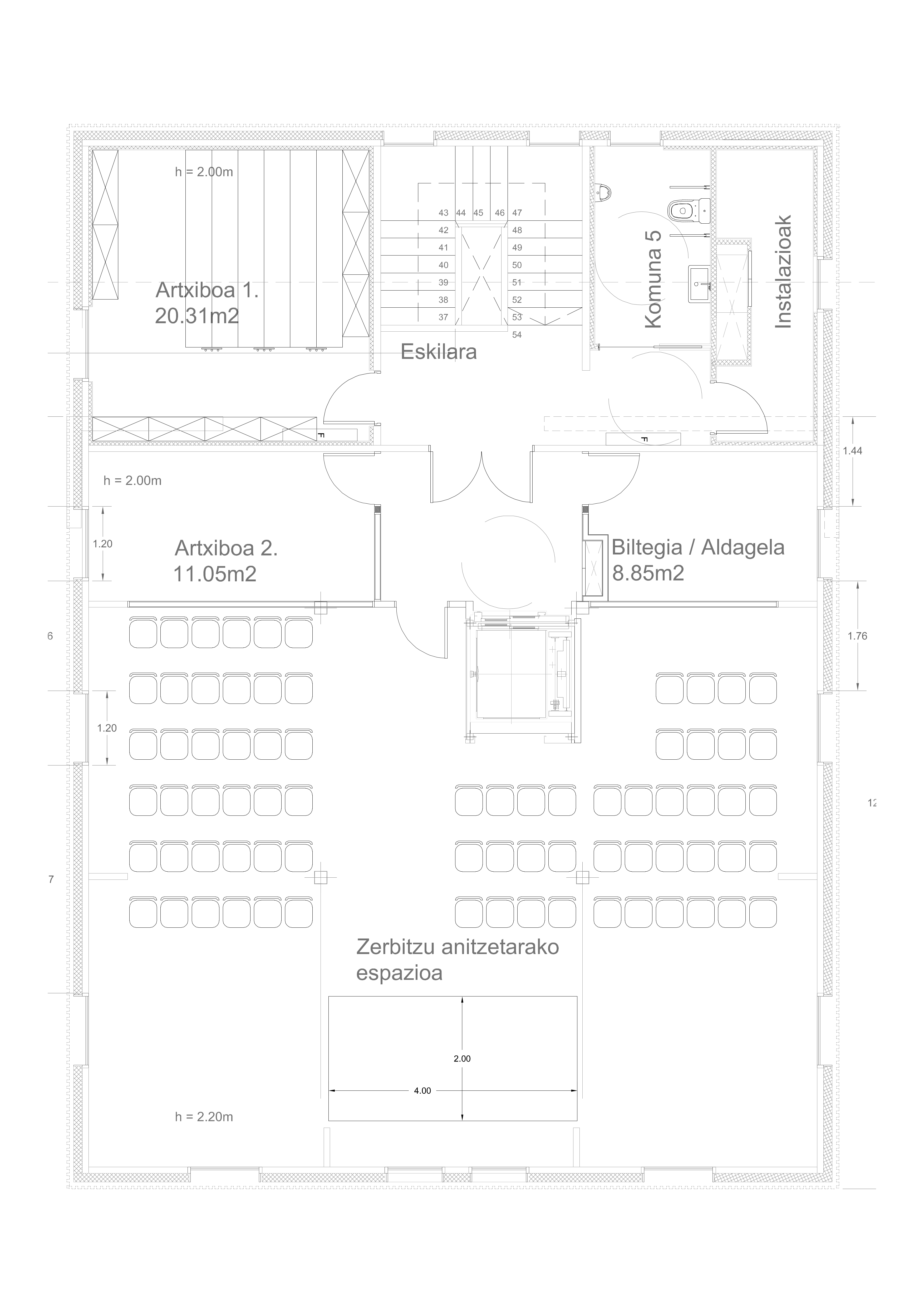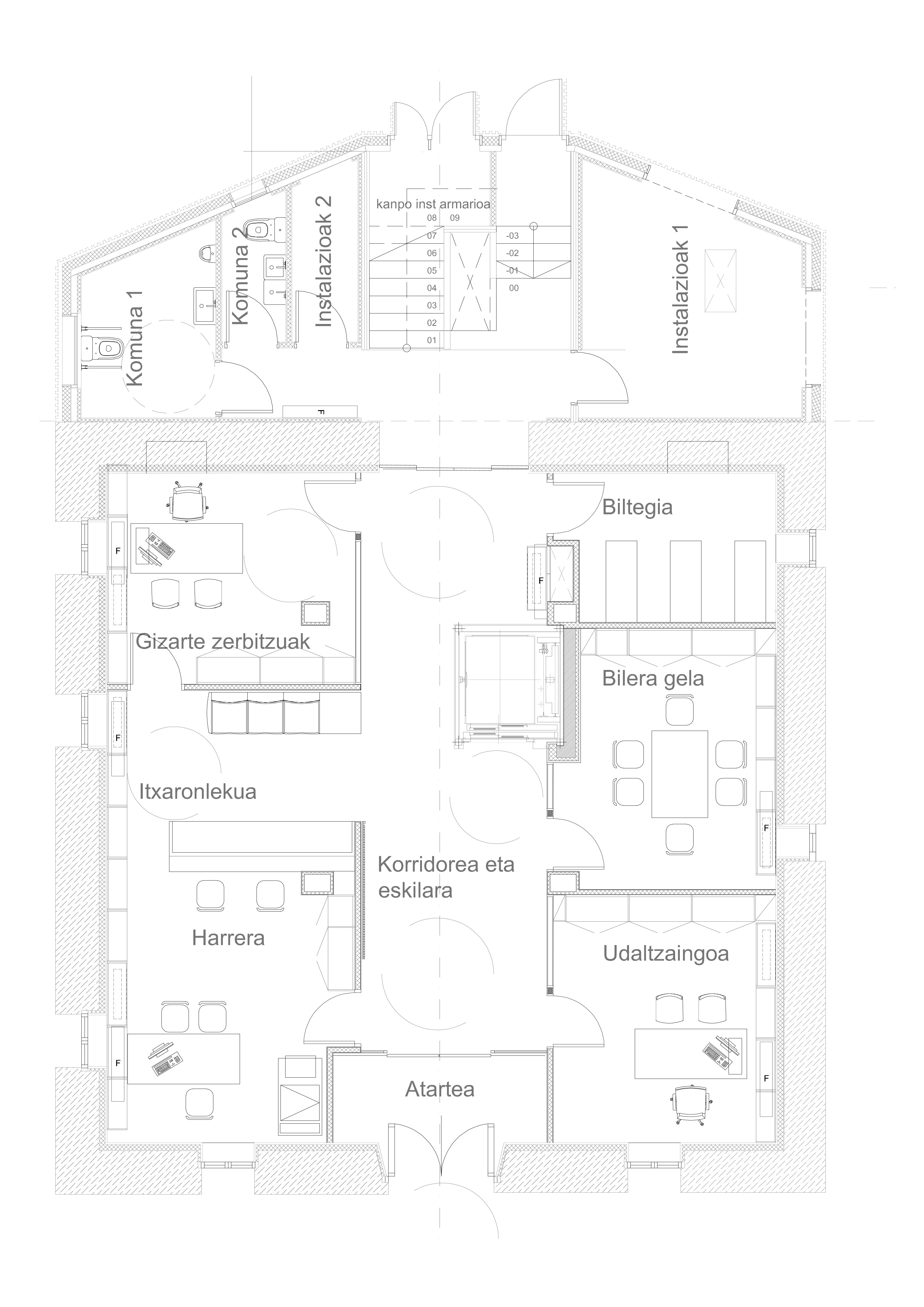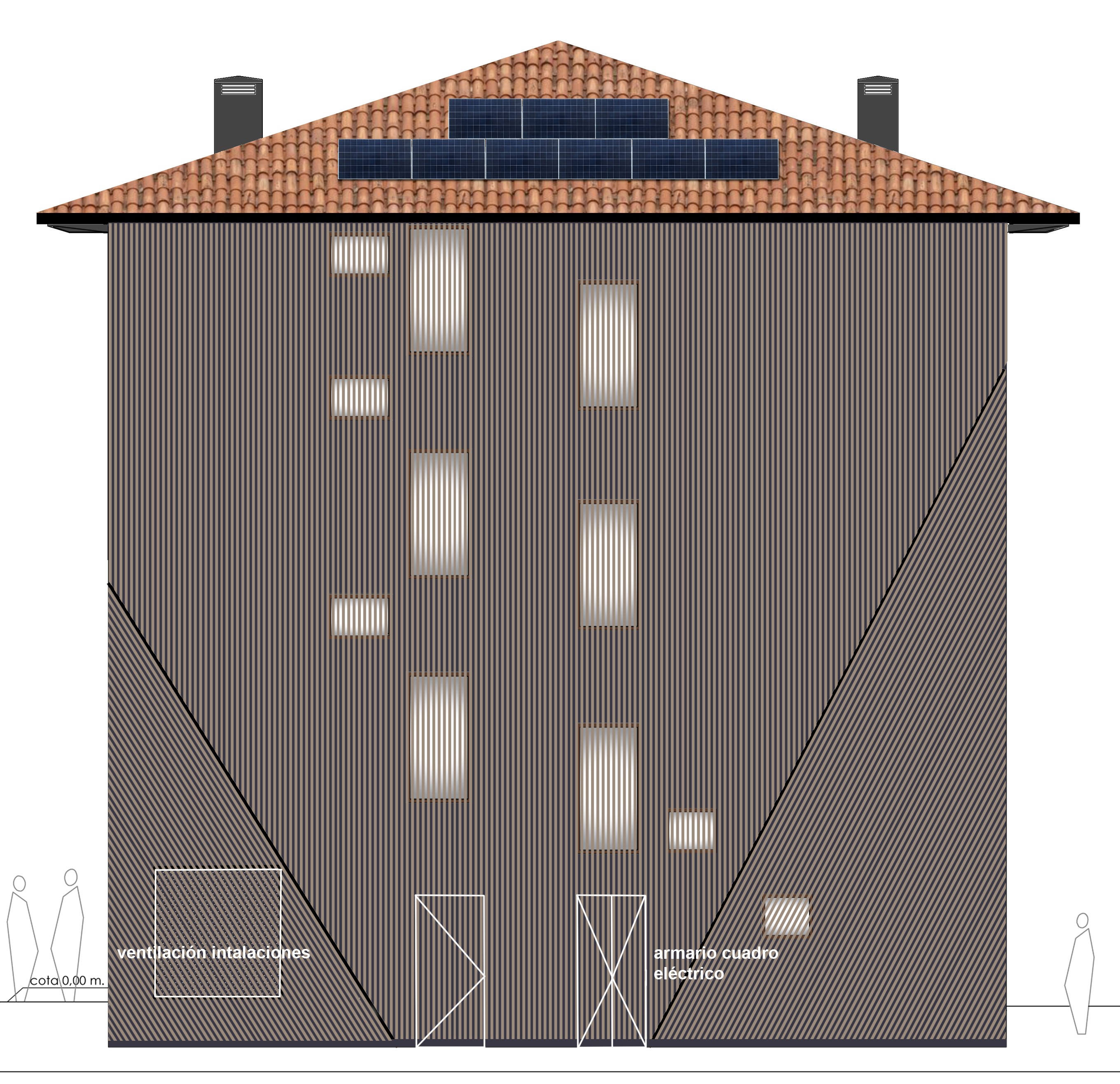 이 제안은 기존 구조물과 조화롭고 존중받는 공존을 달성하여 입구 및 외관의 중요성과 같은 가장 특징적인 특징을 보존하는 것을 목표로 한다. 동시에 명확하게 구분되는 새로운 볼륨이 추가된다. 내부에는 남북 소통 축이 생성되어 엘리베이터가 기존 건물과 추가된 부분의 계단에 위치한다. 지붕은 전체 프로젝트의 통합 요소로 이해되며 엘리베이터 손잡이는 조명 역할도 한다.