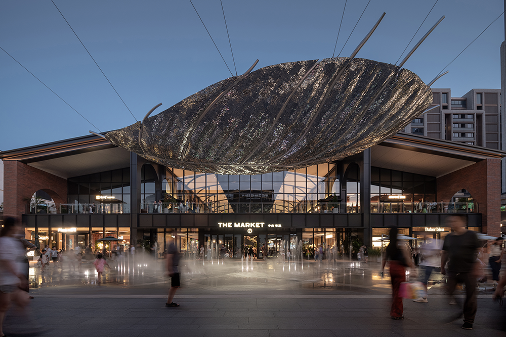 광장의 붉은 벽돌 건물이 랜드마크 역할을 하여 각 구역으로 진입할 수 있다. 건식 분수대를 중심으로 한 중앙 광장은 보행자의 다양한 상호작용을 지원하면서 상업 행사를 위한 큰 규모의 장소를 제공한다. 북측 구역은 도시에서 동네로 점진적으로 풍경이 변화하며 카페와 외식 산업 매장이 분포해 있다. 남측 구역은 패턴화된 도로의 포장과 보행자를 위한 가구와 정원으로 편안한 분위기로 조성되었다. T축을 따라 동서로 이어진 ‘푸징’ 쇼핑 거리는 다양한 하이스트리트 브랜드가 입점하여 고급스럽고 세계적인 수준의 쇼핑 경험을 제공한다.
