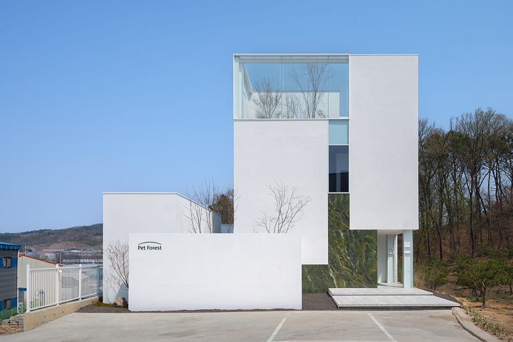 김포시의 외곽 지역에 지어진 펫포레스트 김포는 반려동물 장례식장으로 기존 건물을 리모델링하여 지어졌다. 기존 건물은 1999년부터 운영되었던 국내 최초의 반려동물 장례식장으로 반려동물 장례에 관한 법률적 체계가 갖추어지지 않은 상황에서도 반려동물 장례문화의 증진을 위해 힘쓴 곳이었다. 건축주는 화장시설에 대한 부정적 인식을 개선하기 위해 장례식장으로 운영되던 기존의 건물을 인수하여 새롭게 리모델링하고 현대적인 장례 공간을 만들고자 했다.