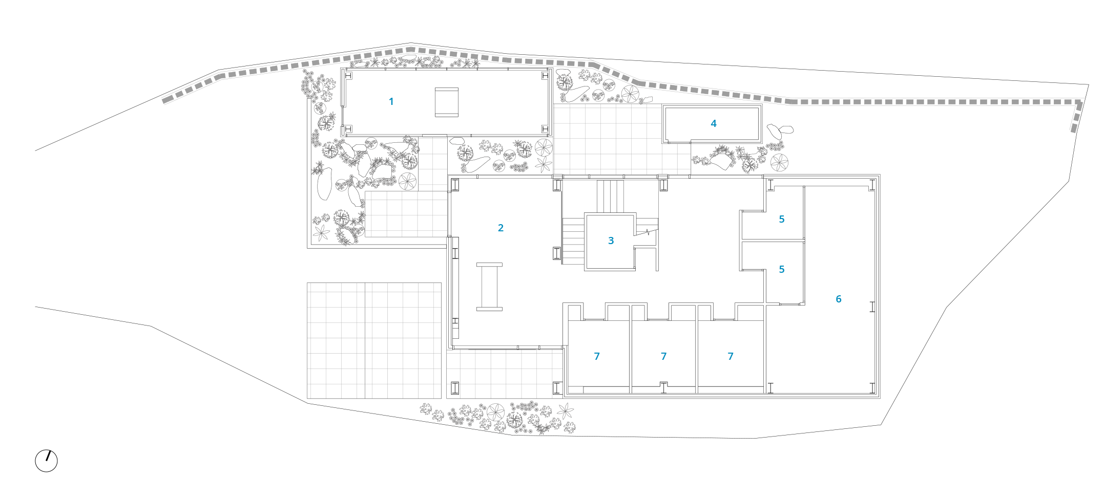 건물은 3개의 동으로 이루어진다. 기존 건물의 내부 계단을 공간의 가운데로 옮겼고 그 자리에는 출입구를 두었다. 계단을 축으로 조닝이 이루어졌다. 방문객들은 메인 홀을 지나 외부의 정원을 거쳐 상담실로 접근할 수 있다. 내부의 각 실로 출입하는 동선은 출입문이 노출되지 않으며, 개별 실들이 사적인 공간의 성격을 가지고 있음을 보여준다.