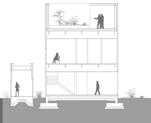 건물은 3개의 동으로 이루어진다. 기존 건물의 내부 계단을 공간의 가운데로 옮겼고 그 자리에는 출입구를 두었다. 계단을 축으로 조닝이 이루어졌다. 방문객들은 메인 홀을 지나 외부의 정원을 거쳐 상담실로 접근할 수 있다. 내부의 각 실로 출입하는 동선은 출입문이 노출되지 않으며, 개별 실들이 사적인 공간의 성격을 가지고 있음을 보여준다.