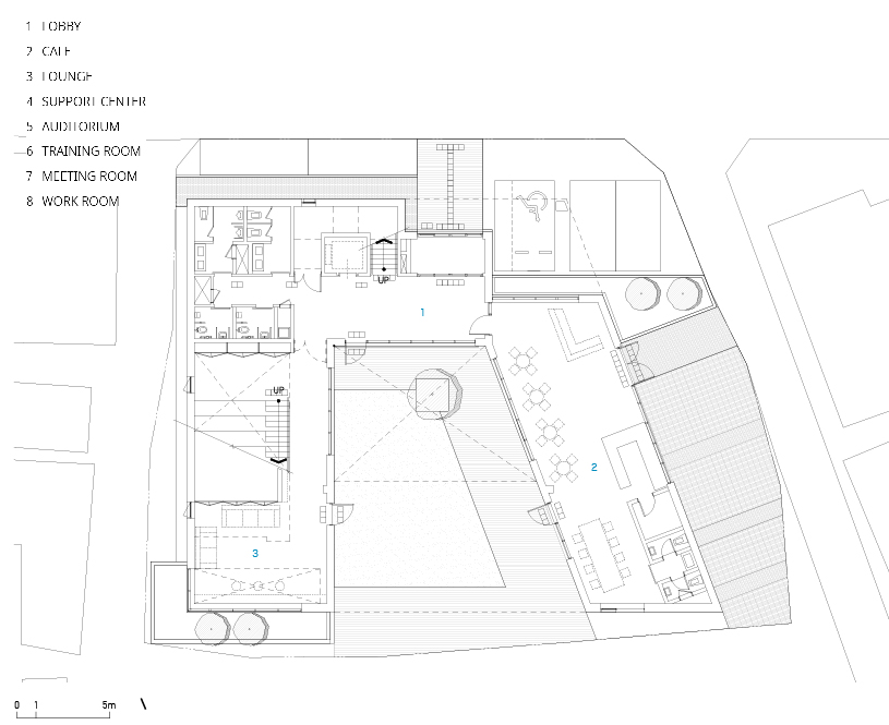 건축가는 직접 맞닿아 있지 않은 두 건축물을 하나의 건축물처럼 느껴지도록 연결성을 만들고자 했다. 두 건축물은 각각 인접한 도로에서 접근이 가능하며, 두 개의 건축물을 관통하는 틈을 따라서도 다닐 수 있다. 두 건축물은 작은 틈을 두고서 서로 상호작용한다. 각각의 건축물은 독립적으로 존재하지만 하나의 건물군을 이루고 같은 공동체를 구성한다. 이렇게 틈으로 공간을 연결한 방식은 단일 건물(어울림센터)을 구성하는 방식에서도 적용되어 있다.