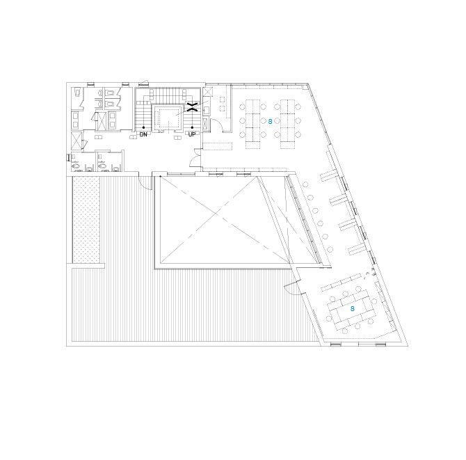 어울림센터의 각 층은 중정을 향하며 열린 틈인 테라스가 있다. 각기 다른 기능을 가진 공간들 사이의 테라스는 사람들을 연결하고 하나의 공동체를 완성한다. 따뜻한 느낌을 주는 사비석 외장재는 지역 주민들이 친근함을 가질 수 있도록 만든다. 2층과 3층은 밝은 외단열 시스템 외장에 리듬감 있는 창문을 설치하여 부안 어울림센터만의 개성을 지닌다.