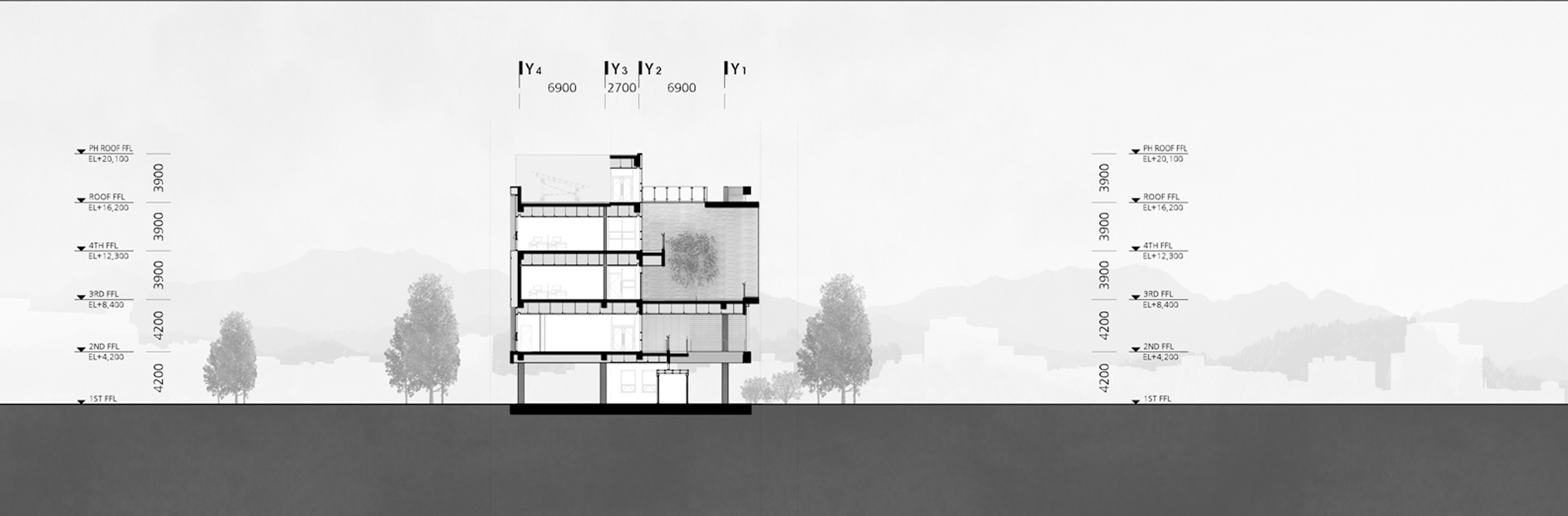 집약된 볼륨의 적층을 통한 입체적인 계획으로 보훈회관의 새로운 모델을 제안함으로 기존 도시 맥락의 시각적, 공간적 간섭을 최소화하며 다양한 활동이 일어나는 입체적 열린 공간을 제공한다. 역동적인 도시 경관을 연출하고, 수직 수평적 단위 구성을 통한 입체적 공간을 구현한다.