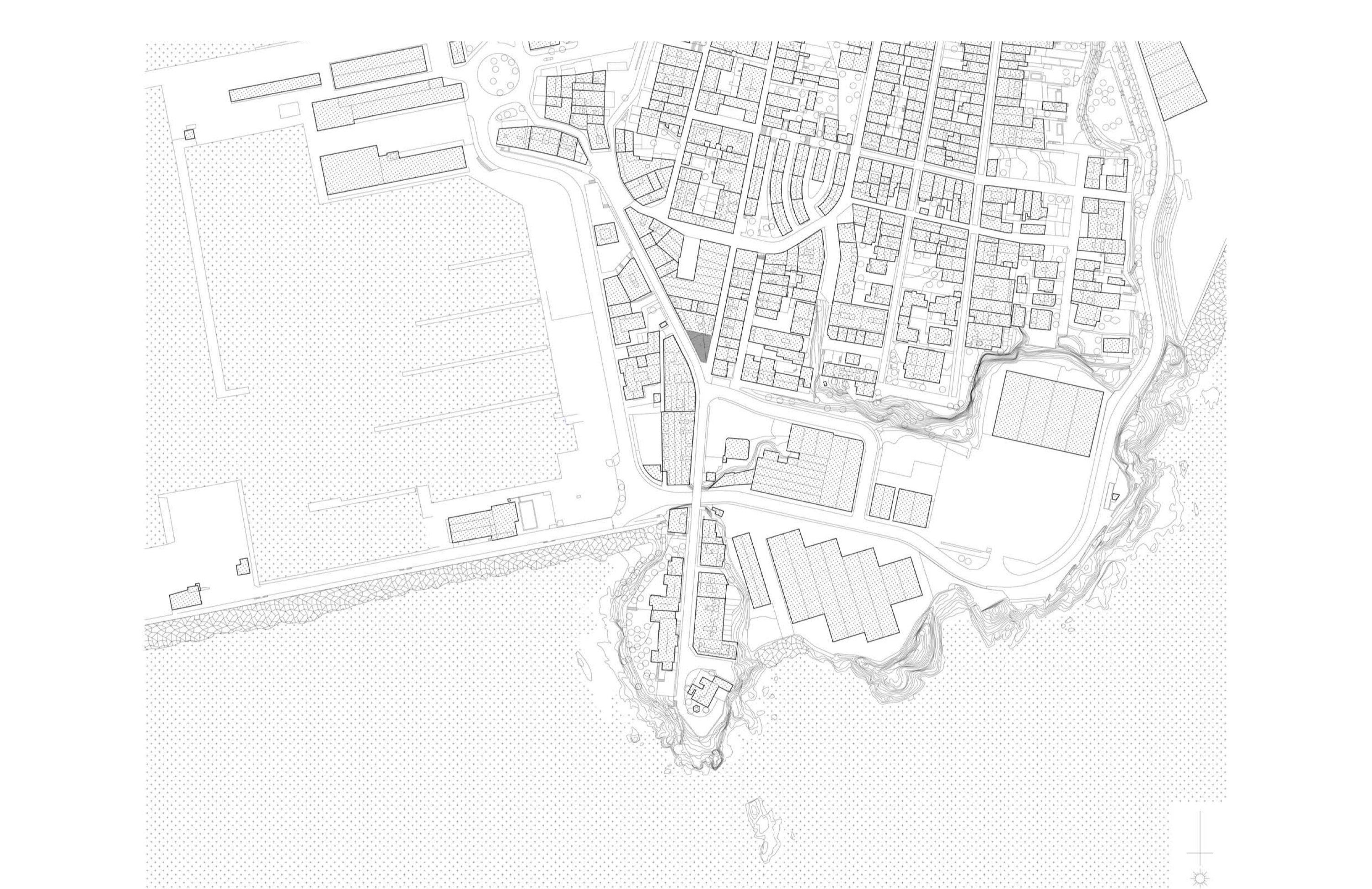 이 주택은 구시가지와 팔라모스 등대 지역 사이에 위치한 삼각형 모퉁이 부지에 자리 잡고 있습니다. 한쪽은 좁고 흙빛을 띤 구시가지의 거리이며, 다른 한쪽은 항구와 바다가 근처 등대가 있는 지역입니다.