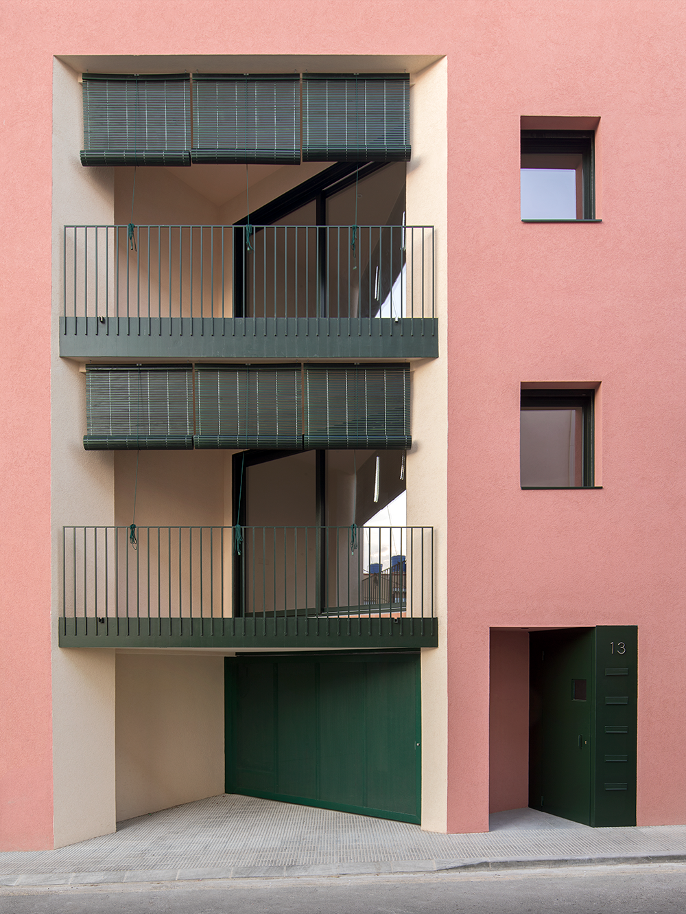 전통 건축의 단순함은 건축물 재료를 선정하는 것에도 반영되었습니다. 파사드는 모르타르로 마감되었고, 바닥은 세라믹 타일, 계단은 화강암으로 계획했습니다. 내부는 흰색으로 칠하고 난간과 롤러 블라인드를 사용했습니다. 구조를 제외한 대부분의 공정은 건식 기술과 반(半)조립된 요소를 사용했습니다. 이를 통해 건물의 탄소 발자국을 줄이고 건축 비용을 절감하며, 사용 가능한 공간을 최적화했습니다.