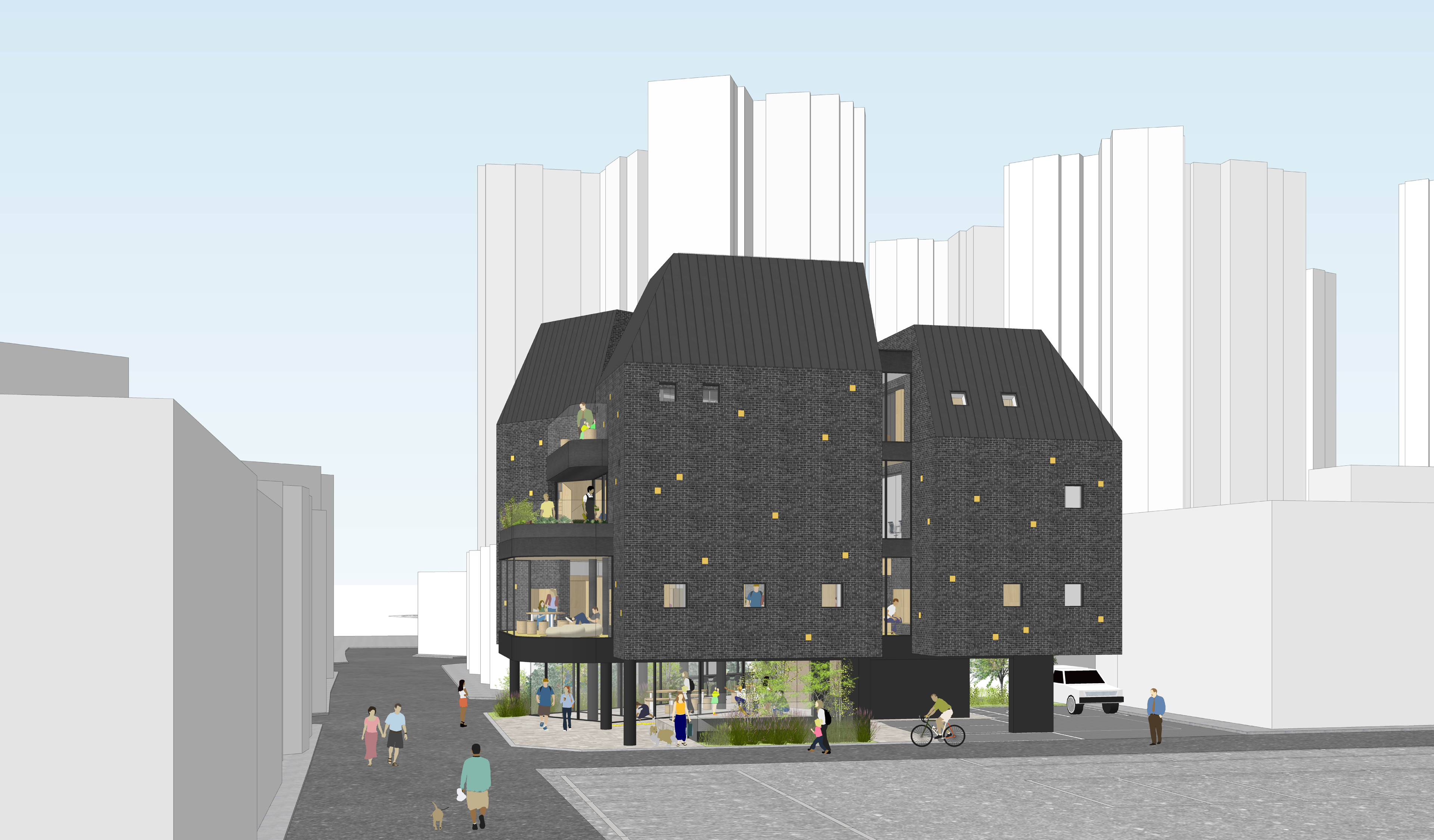 우리 도시에는 청소년을 위한, 청소년이 주인이 되어 만들어 나가는 공간이 다양하지 않다. 대부분의 청소년에게 제1, 2의 공간은 집이나 학교일 것이다. 제1의 공간이라 하더라도 모두에게 가장 편안하거나 머무르고 싶은 장소는 아닐 수 있으며, 특히 위기 청소년과 학교 밖 청소년에게는 집과 학교를 벗어나 안정감을 느끼고 자신을 표현하는 공간이 절실하게 필요하다. 어울림복합플랫폼이 누군가에게는 또 하나의 집, 누군가에게는 또 하나의 학교, 누군가에게는 제3의 공간이 될 모든 가능성을 품은 공간으로 제안한다.