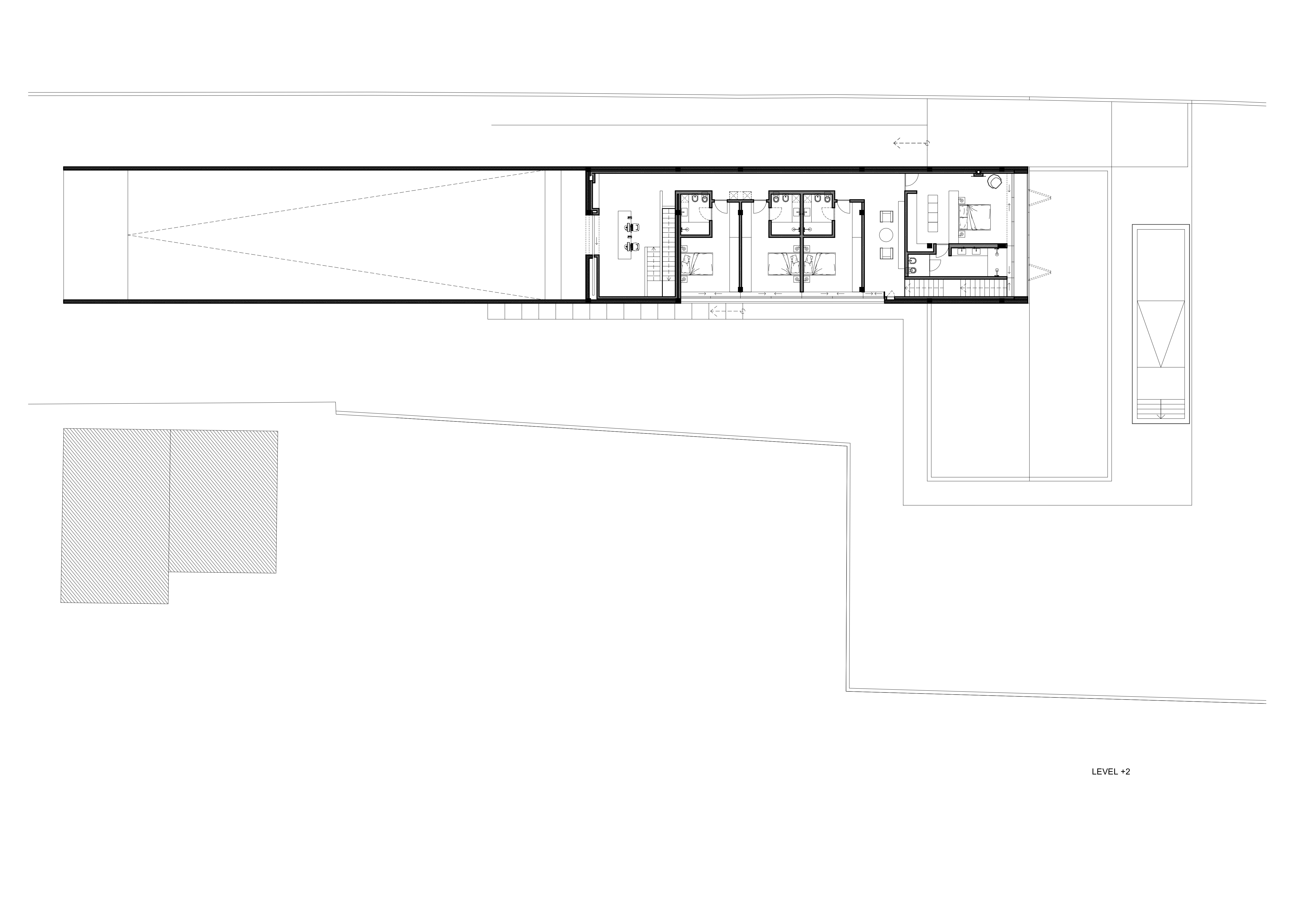 이 주택은 포루투갈의 숨은 보석이라 불리는 트라스-오스-몬치스(Trás-os-Montes)에 있습니다. 두 개의 볼륨이 하나의 건축물로 자연스럽게 연결되어 있습니다. 이 볼륨은 두개로 나뉘어 대지의 경사를 따라서 배치되었습니다. 두개의 볼륨 중 하나의 볼륨은 대지의 긴 방향을 따라 설계되었고, 다른 하나는 첫 번째 볼륨에 직각으로 디자인되어 대지를 더 넓게 활용할 수 있습니다. 이 프로젝트에서는 전통과 현대의 연결고리를 강화하기 위해 지역 전통 건축과 새로 짓는 건축물의 연결성을 유지하는 것이 중요했습니다. 우리는 이 연결성을 주변 지역에서 흔히 볼 수 있는 경사지붕에서 찾았습니다. 주택에서 볼수 있는 삼각형 형태는 지역에서 주로 사용하는 지붕의 형태를 반영하며, 지역 정체성을 표현하는 동시에 주택의 독특한 조형성을 강조하는 요소입니다.