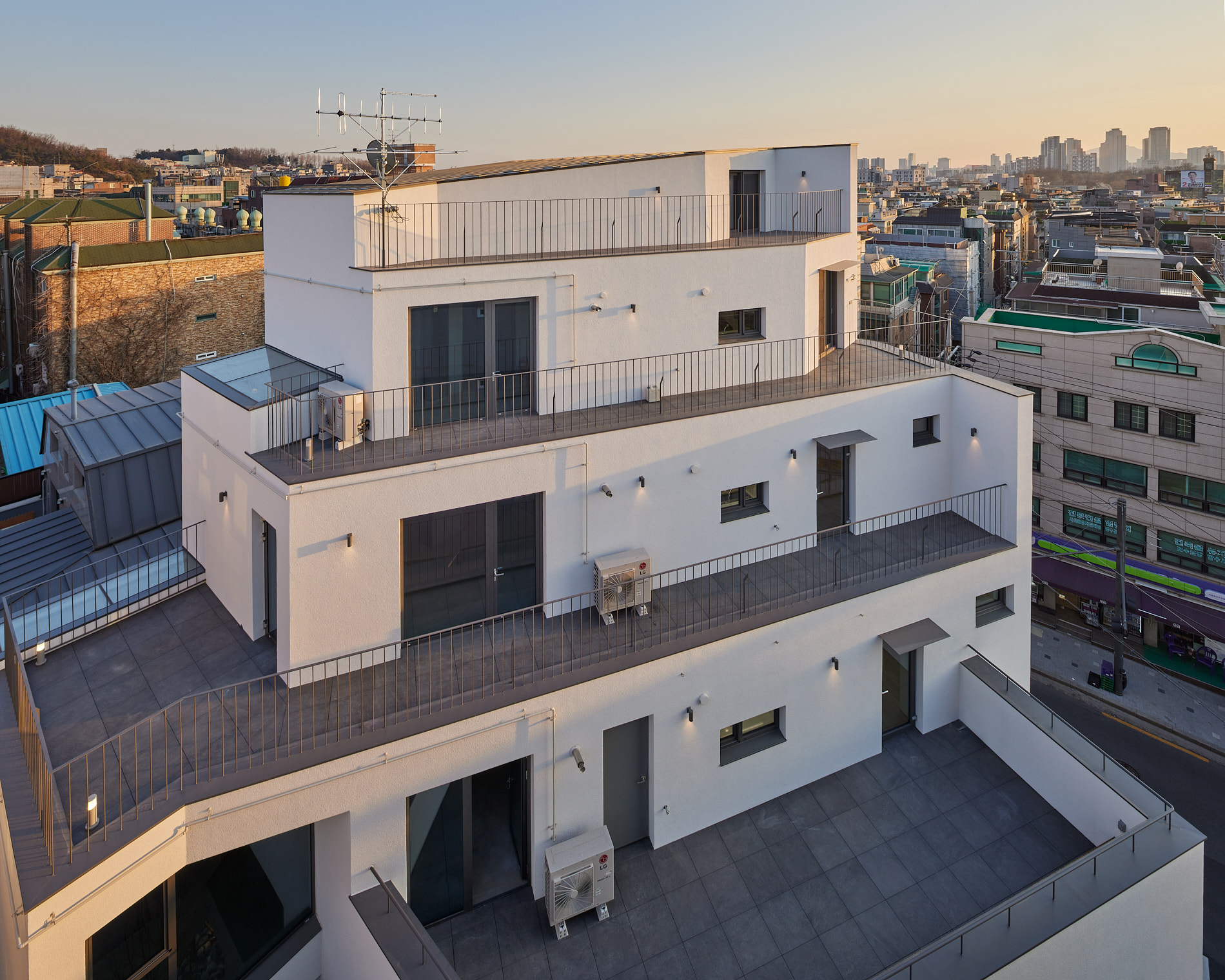 건물 간의 거리가 좁고 다가구와 다세대주택들이 즐비한 중곡동, 그 가운데에 정유헌(停庾軒)이 있다. 정유헌은 도심 속 쉴 수 있는 여백을 만들고, 새로운 요소를 구축하여 중소 규모 주택의 새로운 가능성을 보여준다. 대지에 있던 기존의 옛집은 마당이 넓고, 나무가 많아 주변 아차산에서 새들이 자주 찾아오는 집이었다. 건축주는 노후화된 옛집을 철거하지만, 새로운 건축물에서도 이 터에서의 기억과 경험이 이어지길 바랐다. 건축가는 옛집의 맥락을 고려하여 기단부, 주차장, 주 출입구를 배치하고 옛집이 가지고 있던 넓은 수평 마당은 수직의 베란다, 발코니로 각 세대의 작은 마당을 만들었다. 건축주 세대는 기존 집에서의 기억과 행위를 이어갈 수 있도록 했다.