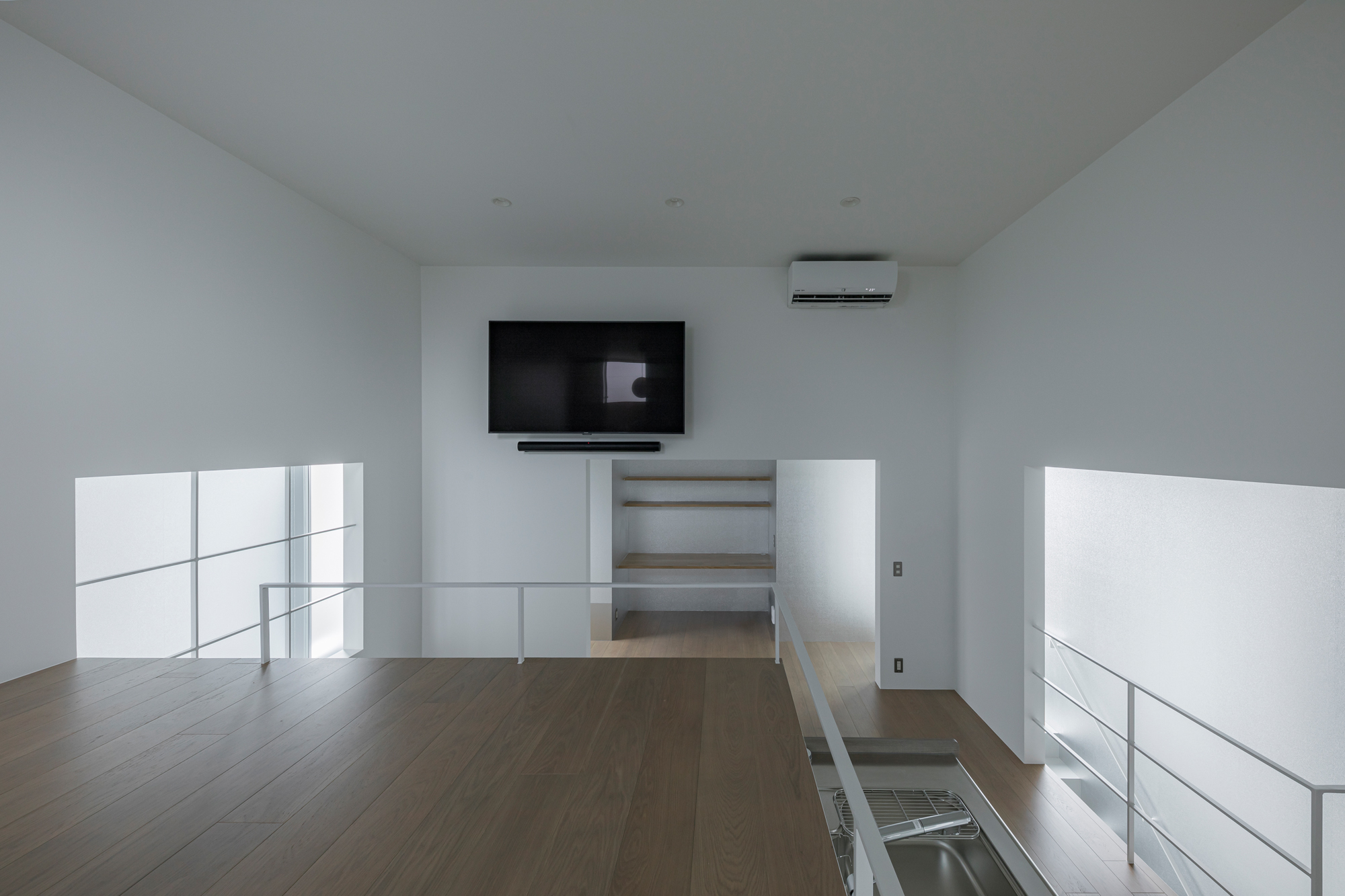 직접적으로 외부를 바라보지 않는 창문은 외부의 분위기와 경치를 반사하여 실내로 전달하며, 프라이버시를 유지하면서도 답답함을 느끼지 않는 집을 만듭니다.