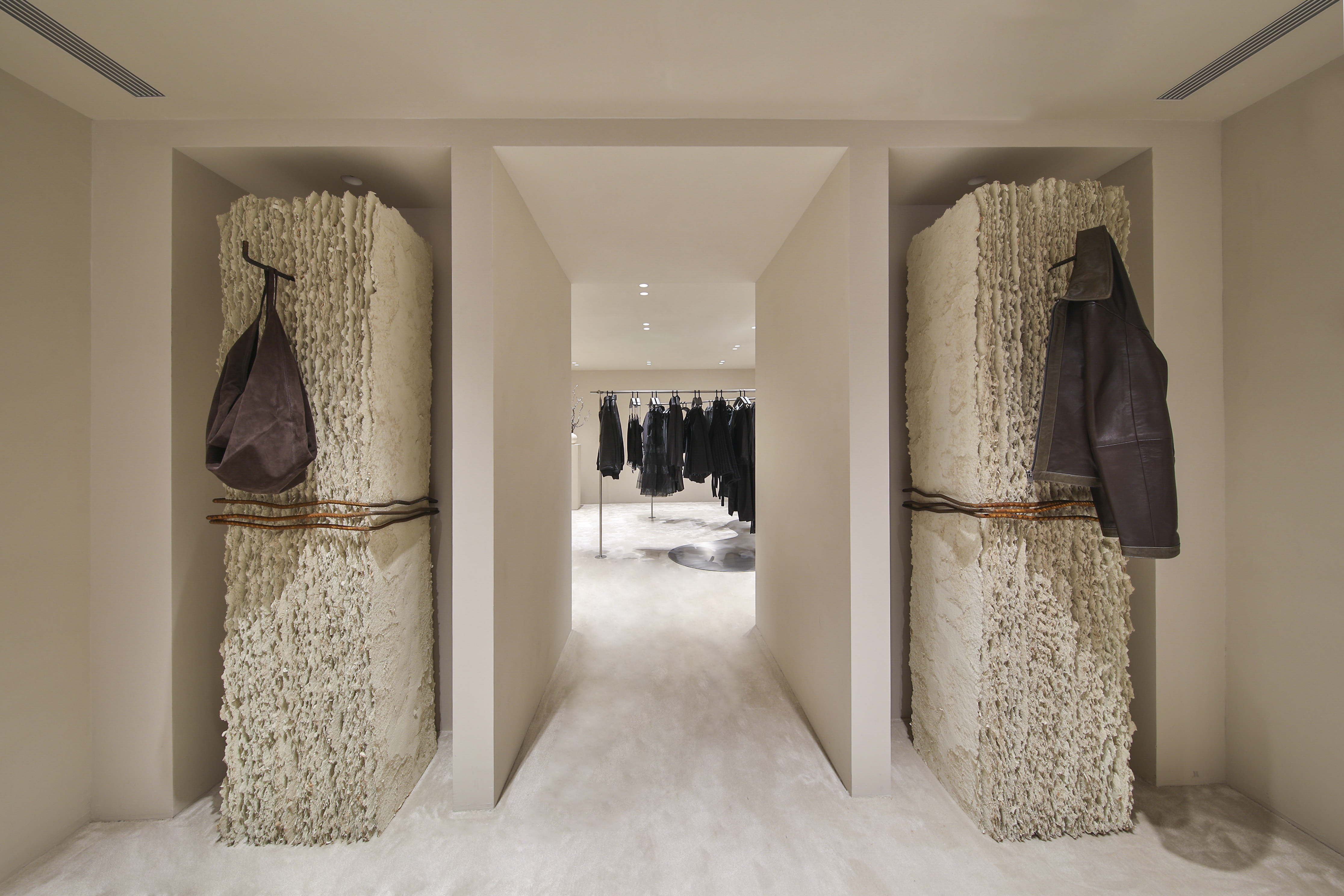 매장은 세 개의 구역으로 나뉘어 있으며, 각 구역은 독립적이면서도 연결된 형태로 다양한 컬렉션을 선보인다. 1층은 자라의 콜라보레이션 컬렉션을 전시한다. 맞춤 디자인된 진열대와 디스플레이는 자라의 한정판 컬렉션과 중국 시장을 위한 특별 컬렉션을 보여준다. 브러시 처리된 스테인리스 스틸, 따뜻한 회색 텍스처 페인트, 부드러운 카펫 마감은 독특하고 몰입감 있는 분위기를 만든다.