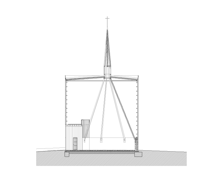 내부로 들어서면 섬세하게 얽힌 목재 사이의 작은 창문들에서 햇빛이 예배당 중심부로 스며드는 것을 볼 수 있다. 예배당은 중세시대의 전통적인 건축 기법에서 영감을 받아 지어졌는데, 사용된 모든 나무와 나무못 조립체들은 현대적 기술인 CNC 제작 공정을 통해 정밀하게 제작되었다. 뿐만 아니라, 길이가 15m에 달하는 기둥은 전부 수작업으로 제작되었다
