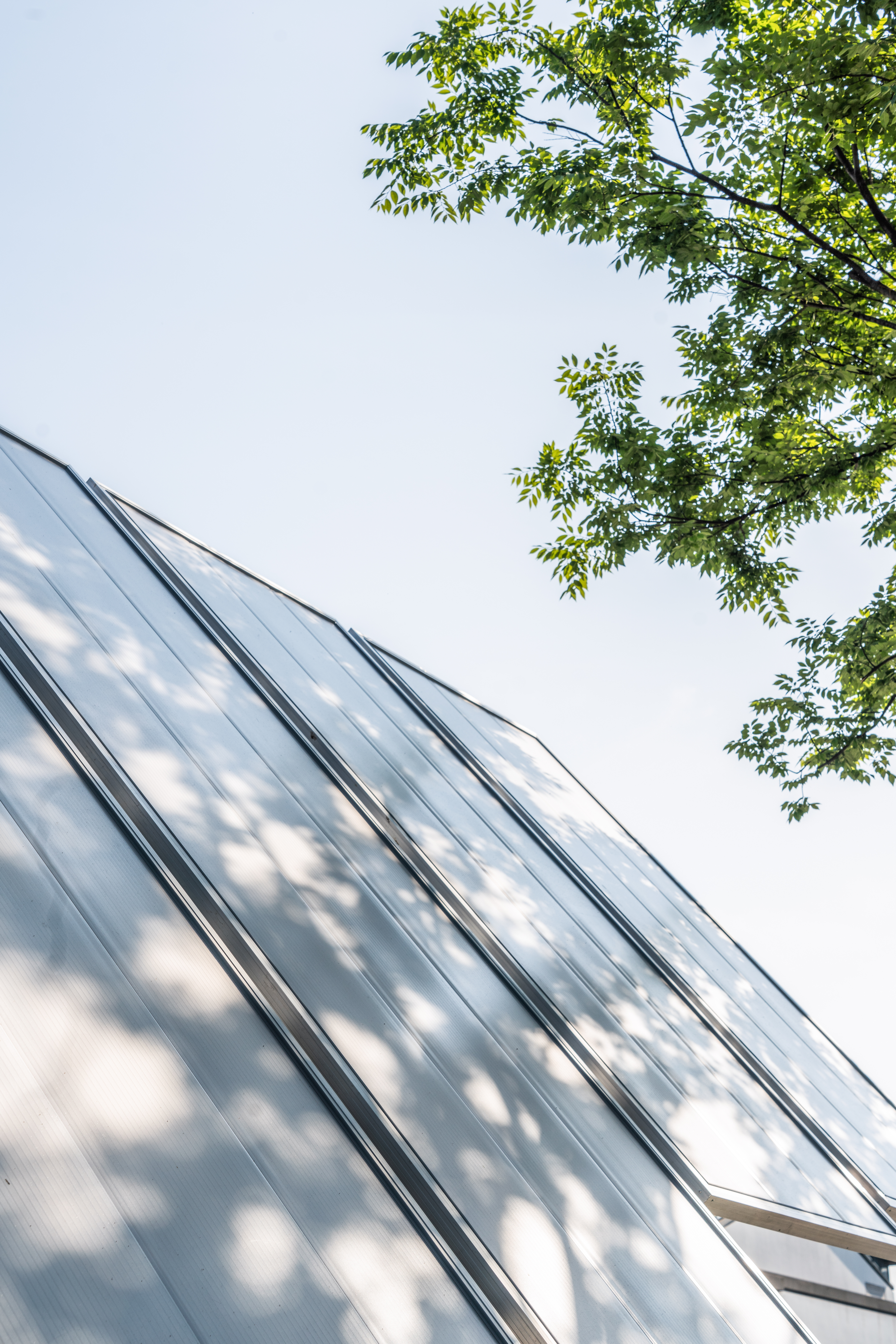 건축가는 지붕을 크기별로 작은 지붕, 중간지붕 크게 두가지로 나누었습니다. 중간지붕은 실내에서 천장을 다섯 가지 패턴으로 배열된 사다리꼴 모듈처럼 보입니다. 마치 지붕이 '퍼즐 게임'처럼 보이도록 했습니다. 이 모듈 방식은 시공 난이도를 줄이고 프로젝트 일정을 단축하는 데 도움이 되었습니다.