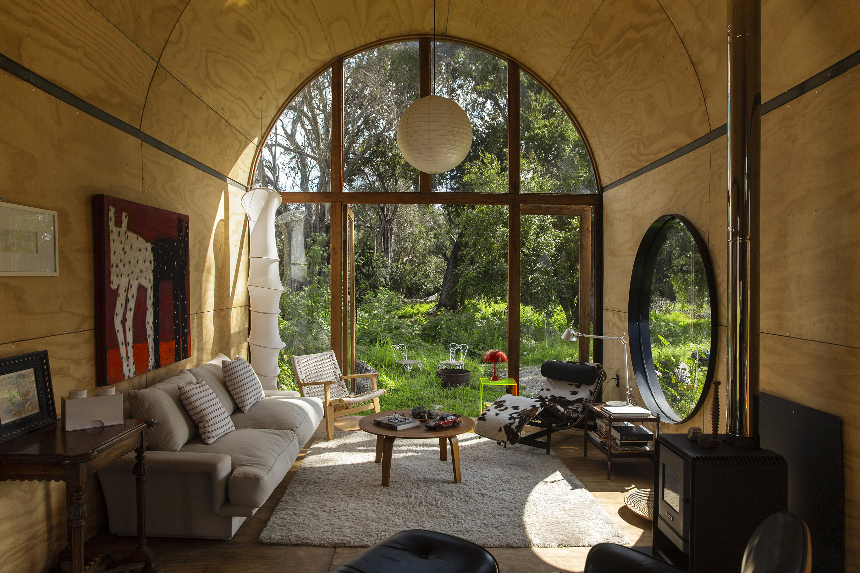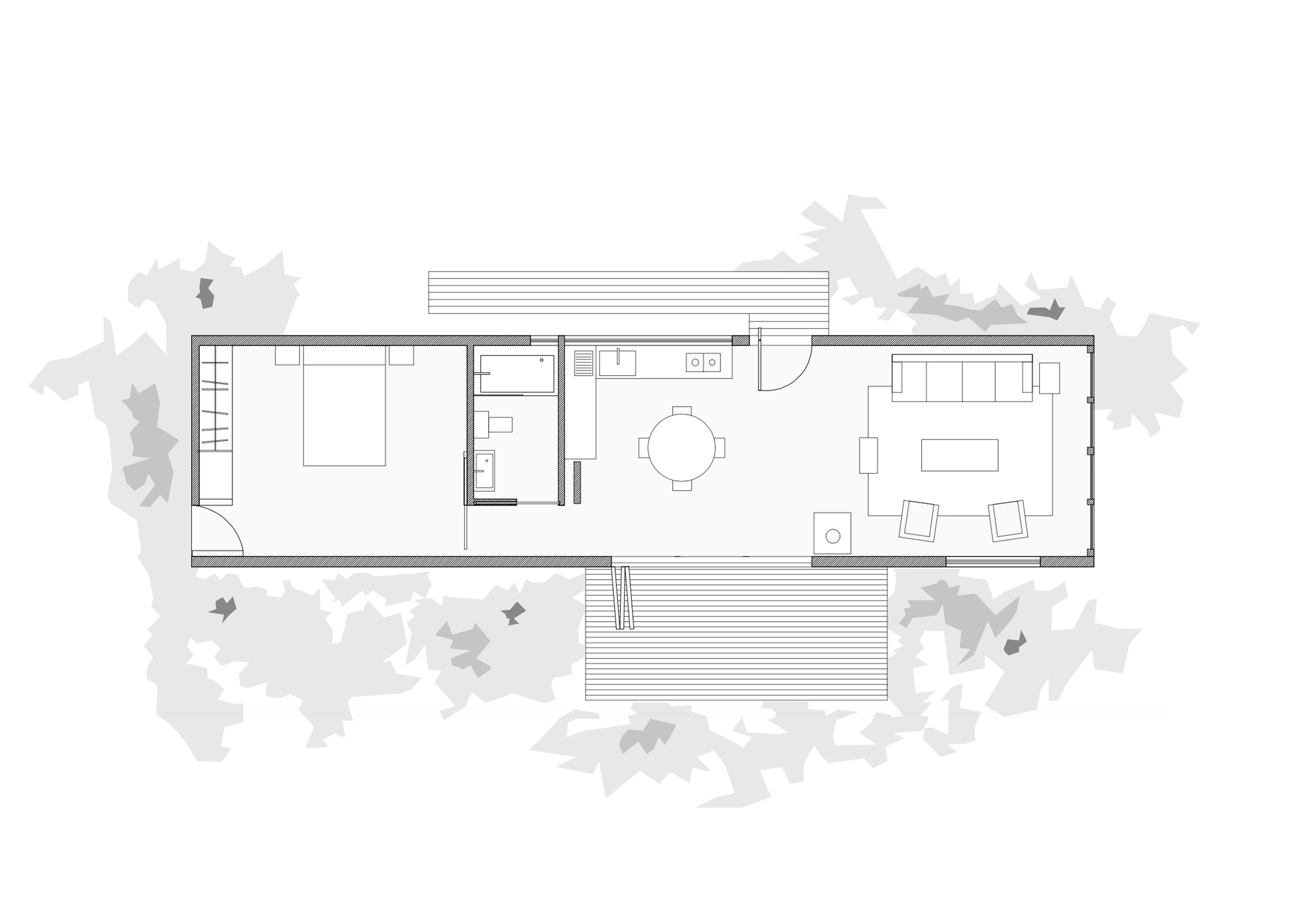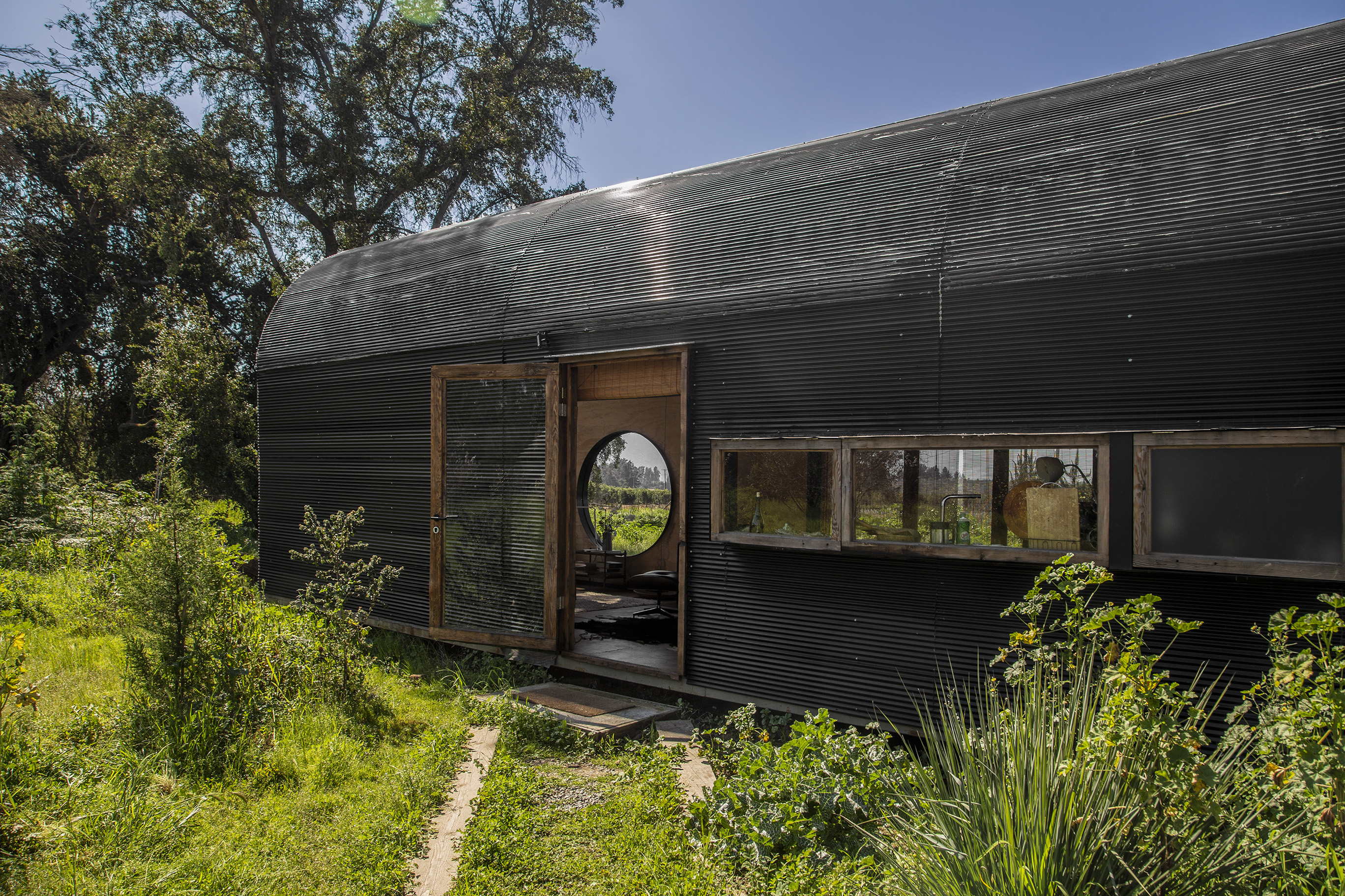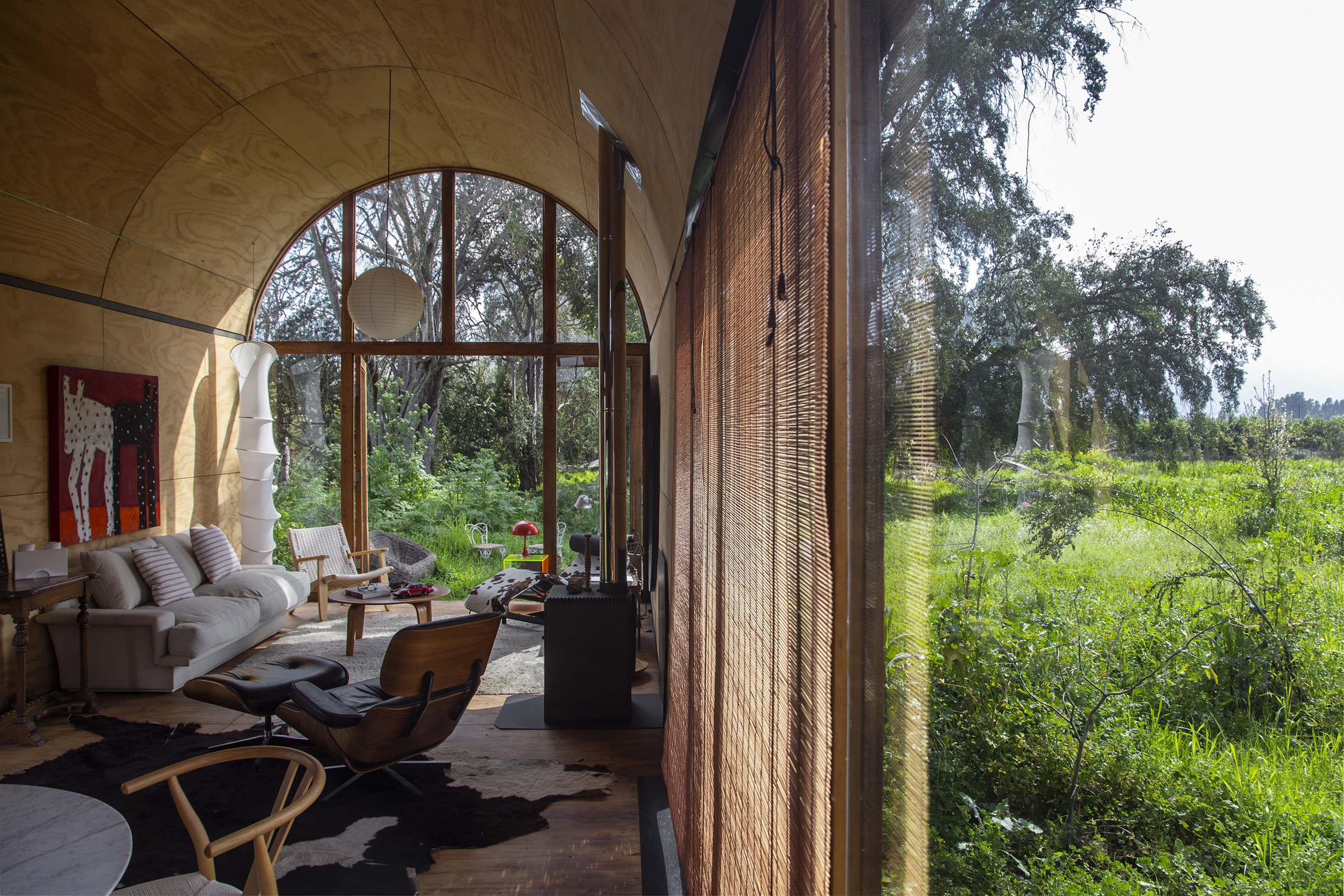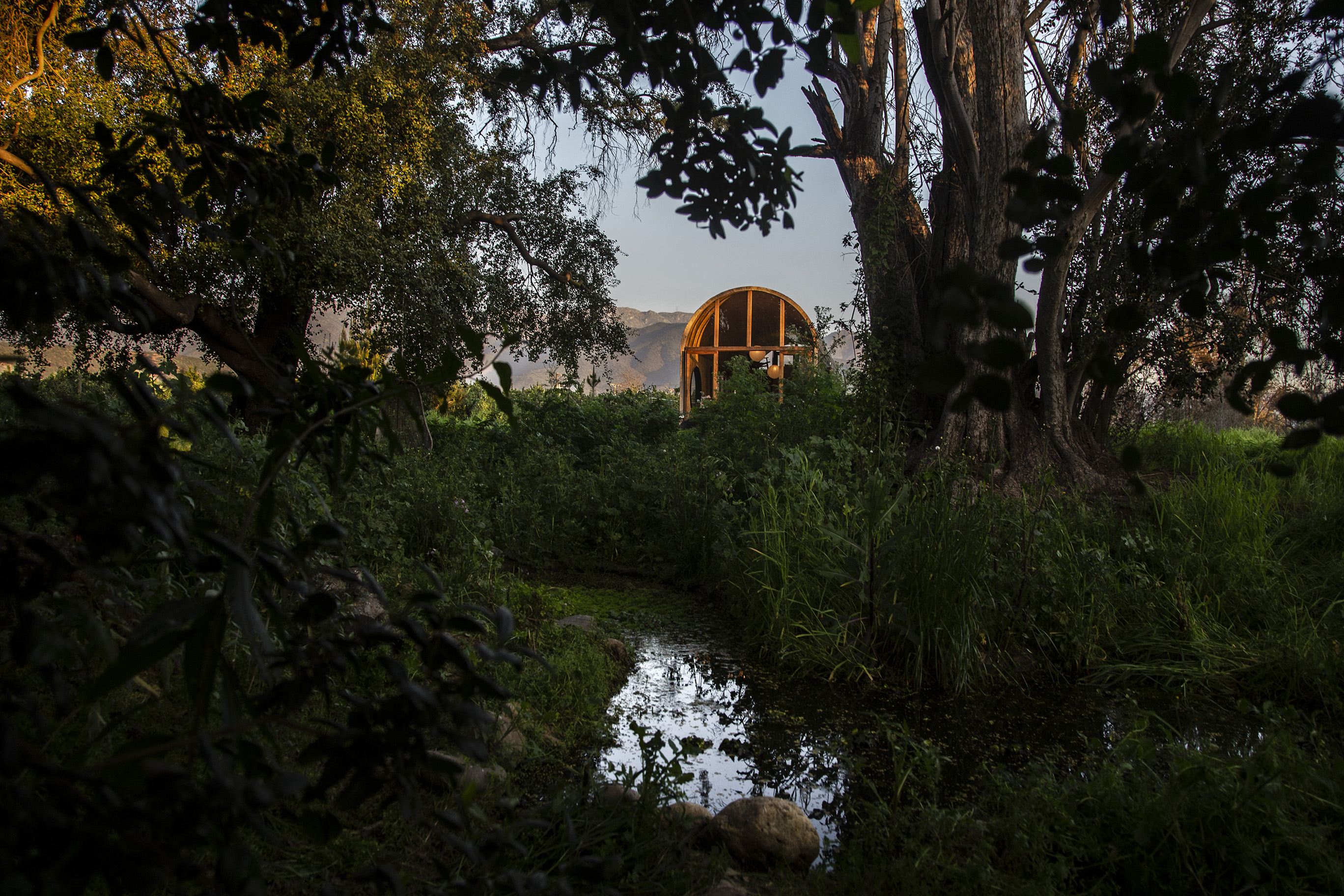 우선 집을 땅 위로 올려놓아야 한다고 생각했다. 이렇게 하면 풀들이 집 아래에서 자라며 초록색 표면을 만들고, 이는 마치 식물로 둘러싸인 수중 호수처럼 집을 떠 있는 것 처럼 보이게 만든다. 또한, 처음의 관심을 끌었던 300년 된 나무들도 주목 했다. 이 나무들은 나머지 식물들과 달리 하나의 풍경을 만들고 있었다. 그래서 건축물을 이 나무들을 향해 배치하기로 했으며, 적당한 거리를 두어 두 개 층의 높이와 아치형 천장을 통해 숲을 100% 담아내어 내부 공간으로 끌어들였다.