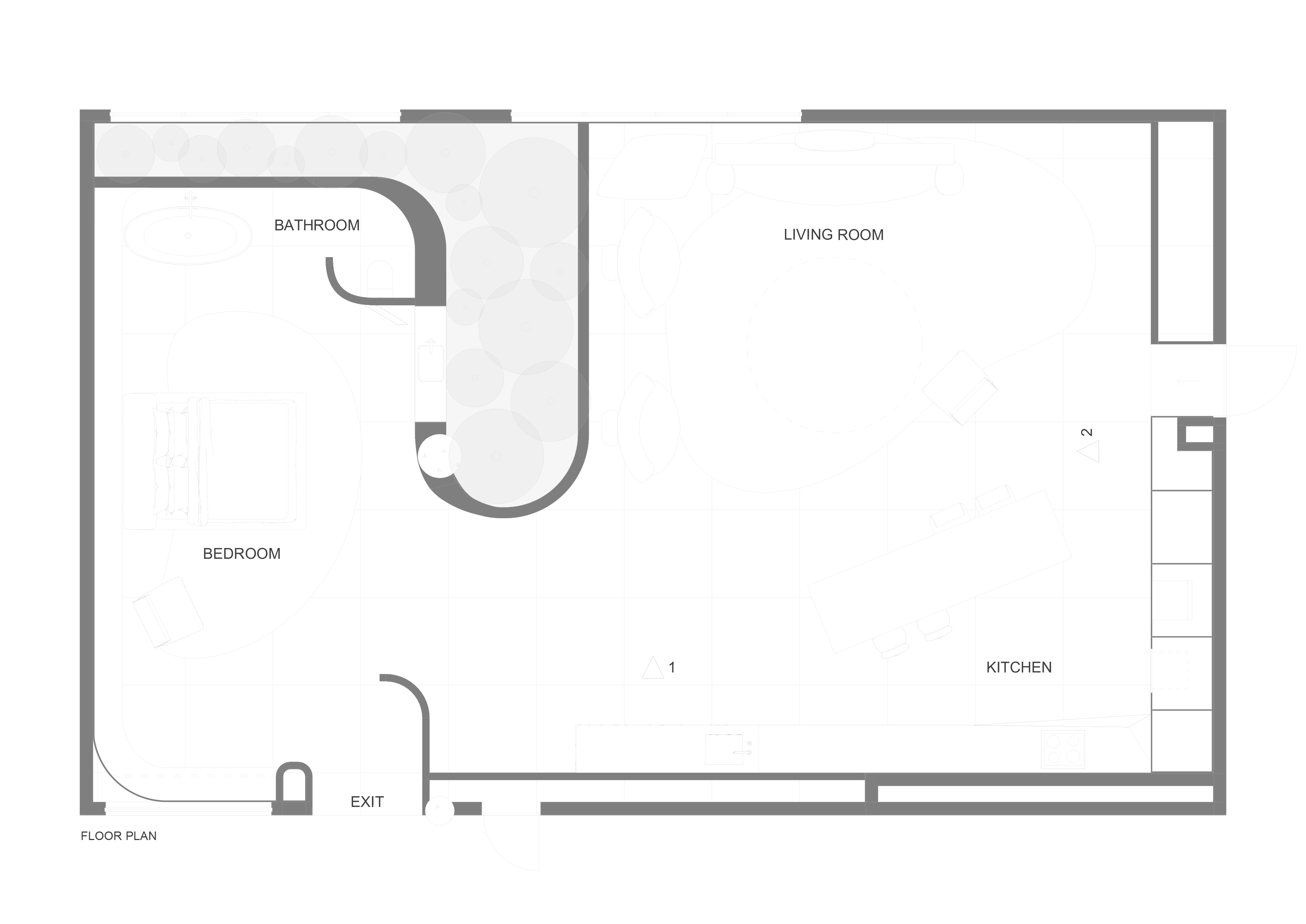 프로젝트 면적이 1,528 ft² 인 이 프로젝트는 거실, 주방, 침실, 욕실이 하나의 공간처럼 느껴진다. 이 공간의 미니멀리즘은 세심하게 선택된 요소들로 구성되었다. 공간 디자인 큐레이션에는 디자이너의 동료 예술가인 Marcos Coelho Benjamim이 만든 파란색 만다라와 미니멀한 마감이 특징인 갈색과 오프 화이트 색조의 가구들이 포함되어있다.공간의 통합은 넓이를 탐구하며, 침묵을 지속적으로 언급하고 의도적으로 여러 순간에 공허감을 만들어낸다.