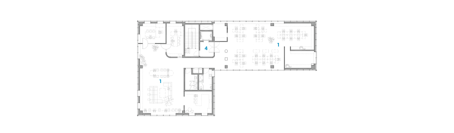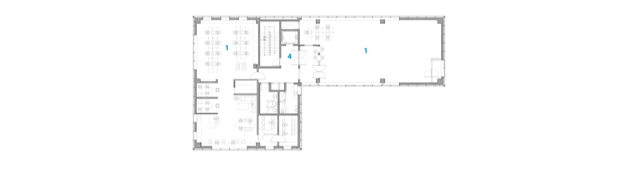 지하 공간에서 지상 1층까지 연결되는 선큰은 따스한 자연광과 신선한 공기를 지하 대공간으로 유도한다. 뿐만 아니라, 앞마당과 뒷마당을 연결하는 통로인 빈 공간이 별도로 조성되어 단조로운 긴 대지의 흐름을 이어준다. 이러한 엠 빌딩 곳곳에 배치된 빈 공간은 건축가의 철학을 담고 있으며, 공간 간의 단순한 연결을 넘어 대지가 숨 쉴 수 있는 숨통 역할을 한다. 건축가는 임대 공간으로 사용할 수 있는 면적을 과감히 비워내면서 대지와 건축, 그 공간을 이용하는 사람들의 이야기를 차곡차곡 담아내어 건축물을 완성했다.