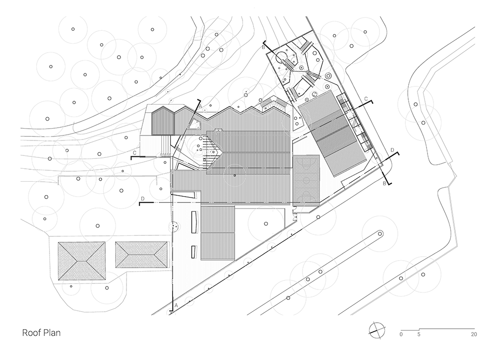 이 프로젝트는 자연과 조화를 이루는 공간을 만드는 것을 기반으로 했다. 대규모 토목 공사와 기존 나무의 벌목을 피하기 위해 부지의 기존 지형을 존중했으며, 자연 채광과 환기, 빗물 수집 및 재활용을 활용했다. 이를 위해 프로그램은 기존의 작은 건물들이 있던 공터와 장소들에 블록 단위로 나누어 배치됐다. 수평적 구조와 블록식 구성은 건물들의 역사적 규모를 존중하고 전체적인 접근성을 보장한다. 동선은 계곡 전망을 극대화하고 사람들, 환경, 학습 간의 상호작용을 위해 만남이 최대화되도록 설계됐다.