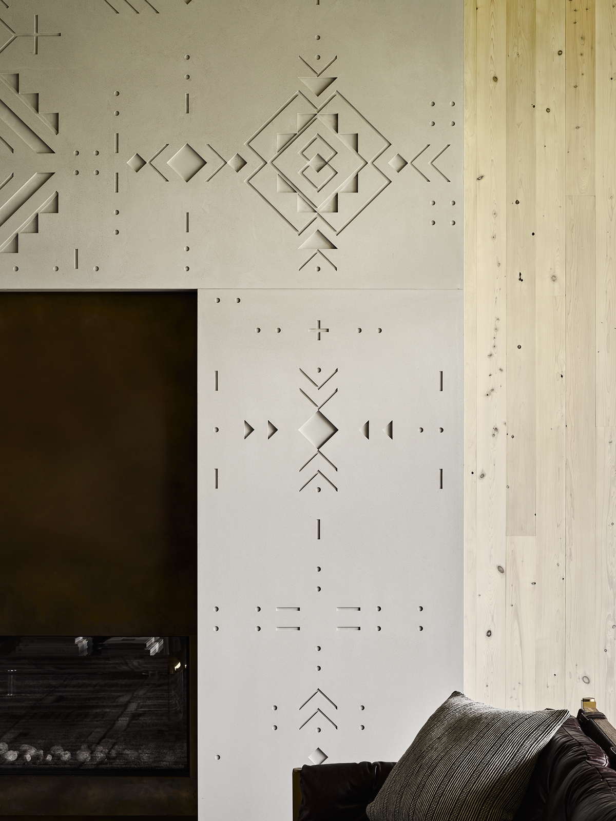 보헤미안 라이프스타일과 음악, 문학, 자연을 사랑하는 부부의 감성이 인테리어 디자인에 반영되었다. 편안함과 질감의 층위, 빈티지 가구, 그리고 가족과 친구들에게 열린 공간을 원하는 고객의 취향이 곳곳에 드러난다. 모든 표면에는 디테일이 더해졌으며, 타투에서 영감을 받은 콘크리트 베이스 벽난로 디자인, 손으로 그린 맞춤 벽지 벽화, 그리고 전체 디자인에 적용된 기하학적 패턴이 돋보인다.