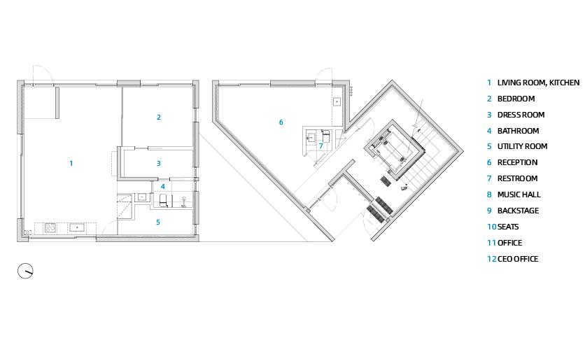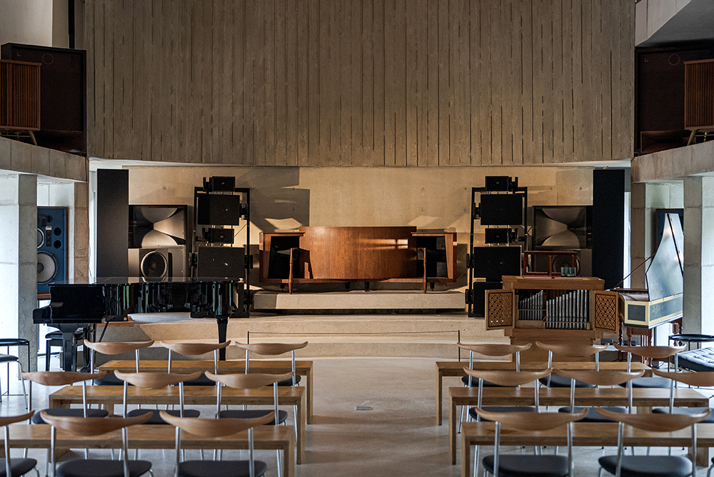모던클로이스터의 가장 중심이 되는 공간은 2층의 음악당이다. 오디오 역사상 가장 아름다운 스피커로 불리는 ‘JBL 파라곤(Paragon)’ 스피커가 음악당 가운데 자리 잡고 있다. 건축주는 ‘JBL 파라곤 (Paragon)’ 스피커를 중심으로 음악을 향유할 수 있는 공간을 원했고, 이에 따라 건축가는 스피커를 음악당의 공간 요소로써 해석했다.