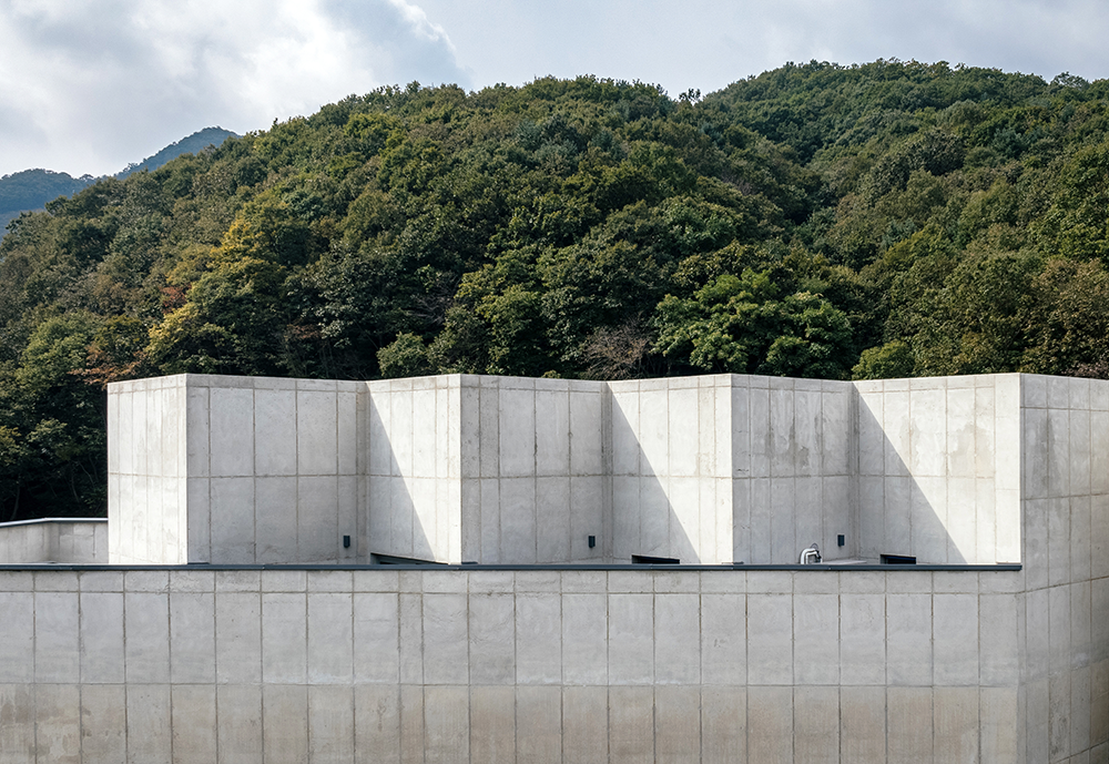 양평의 작은 마을 길을 따라 걸으면 시골집 사이로 높은 노출 콘크리트 건축물이 시야에 들어온다.