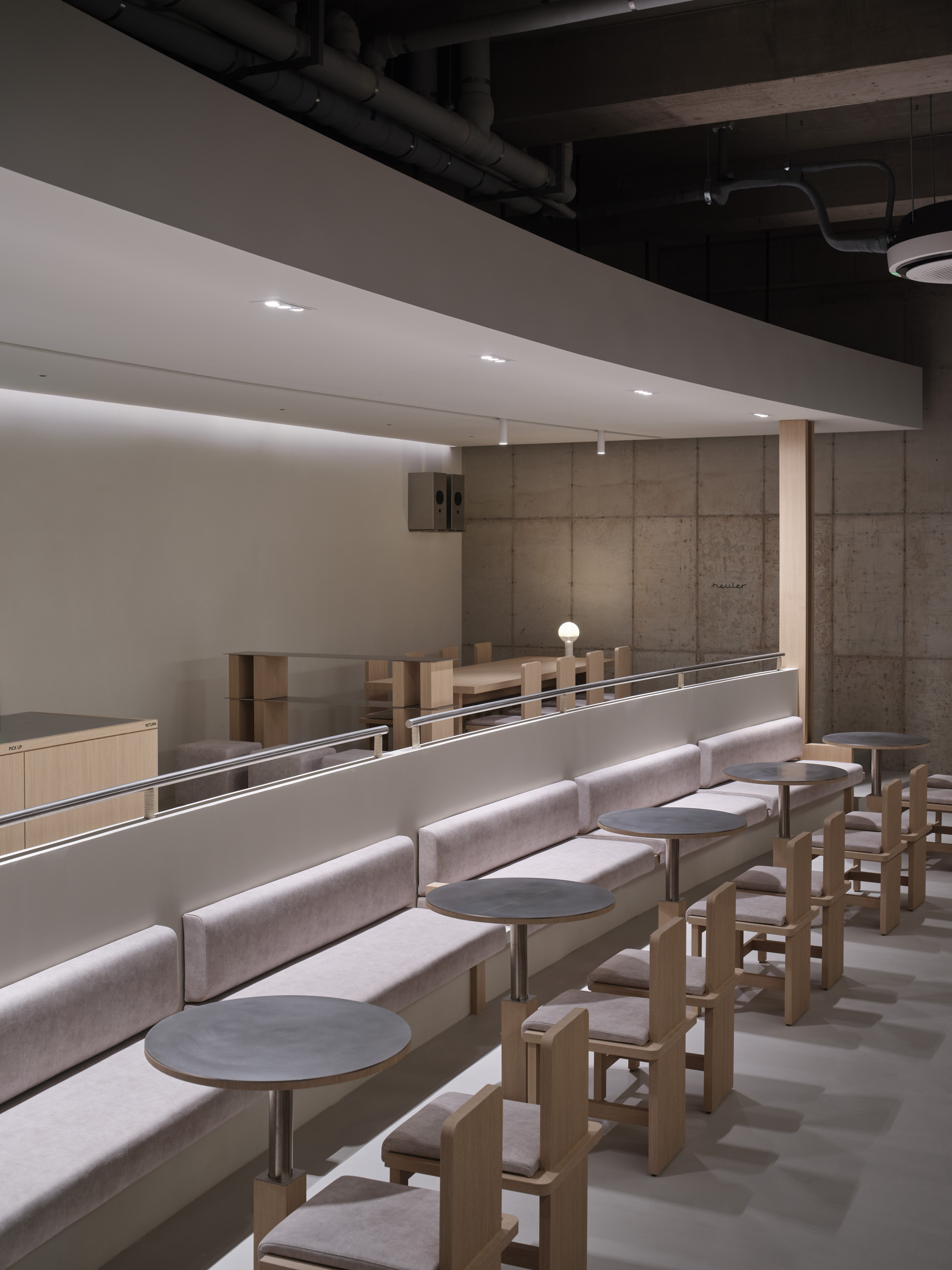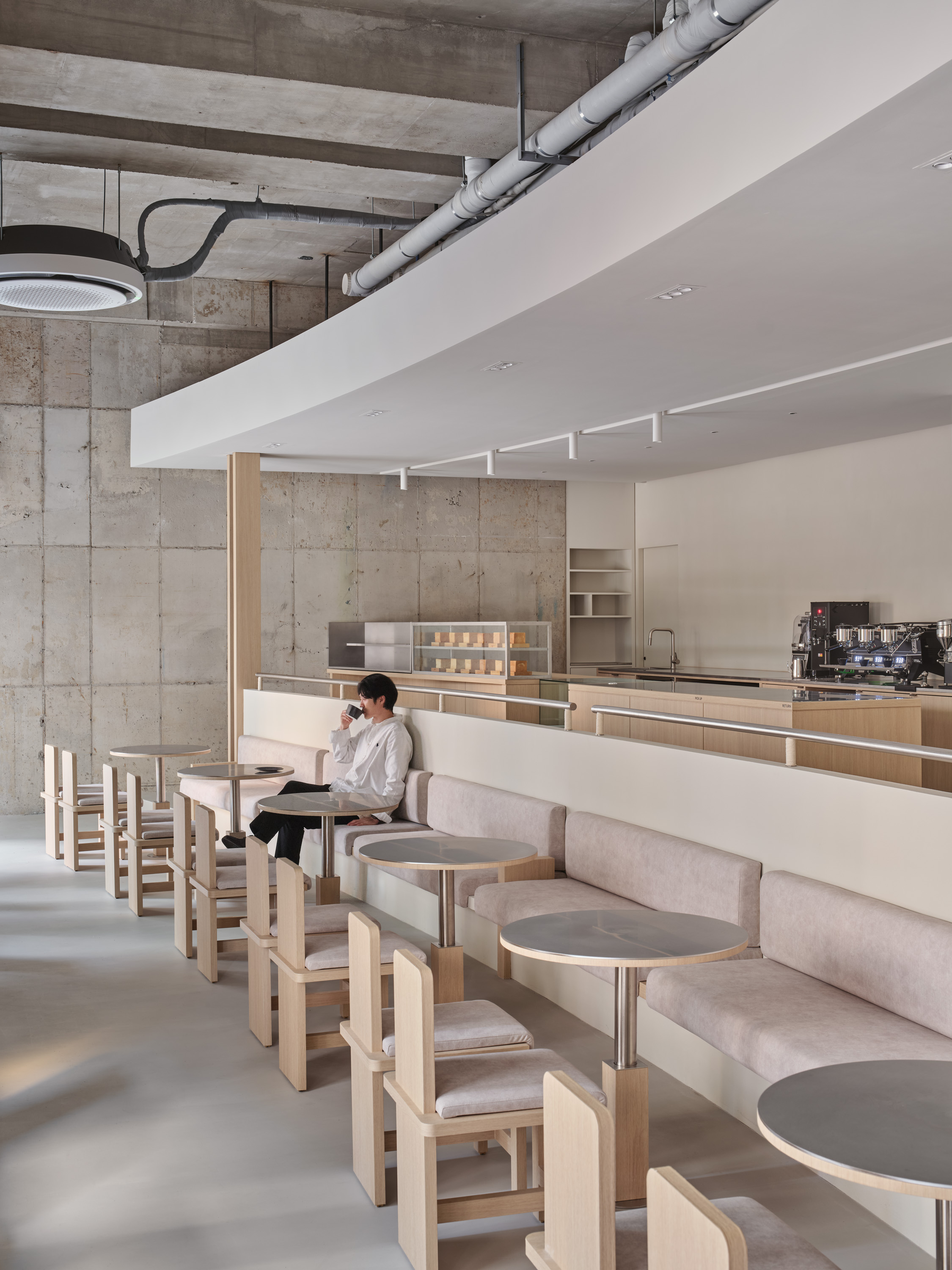 카페 흘러는 물이 굽이쳐 흘러 들어와 완만히 빠져나가는 모습에 착안하여 전개한 프로젝트다. '流留場 유유장'이라는 이름 그대로 공간은 사용자가 유유히 입장하여 느긋이 머무르고 여유로이 퇴장하기까지의 여정을 옹호하며 격려한다. 물은 대기와 대지 등 자연적인 요소의 영향으로 흐름의 방향과 강도가 정해진다. 우리는 이러한 물의 특성을 공간에 반영하여 사용자들이 수면 위를 부유하는 모습을 연상했다.
