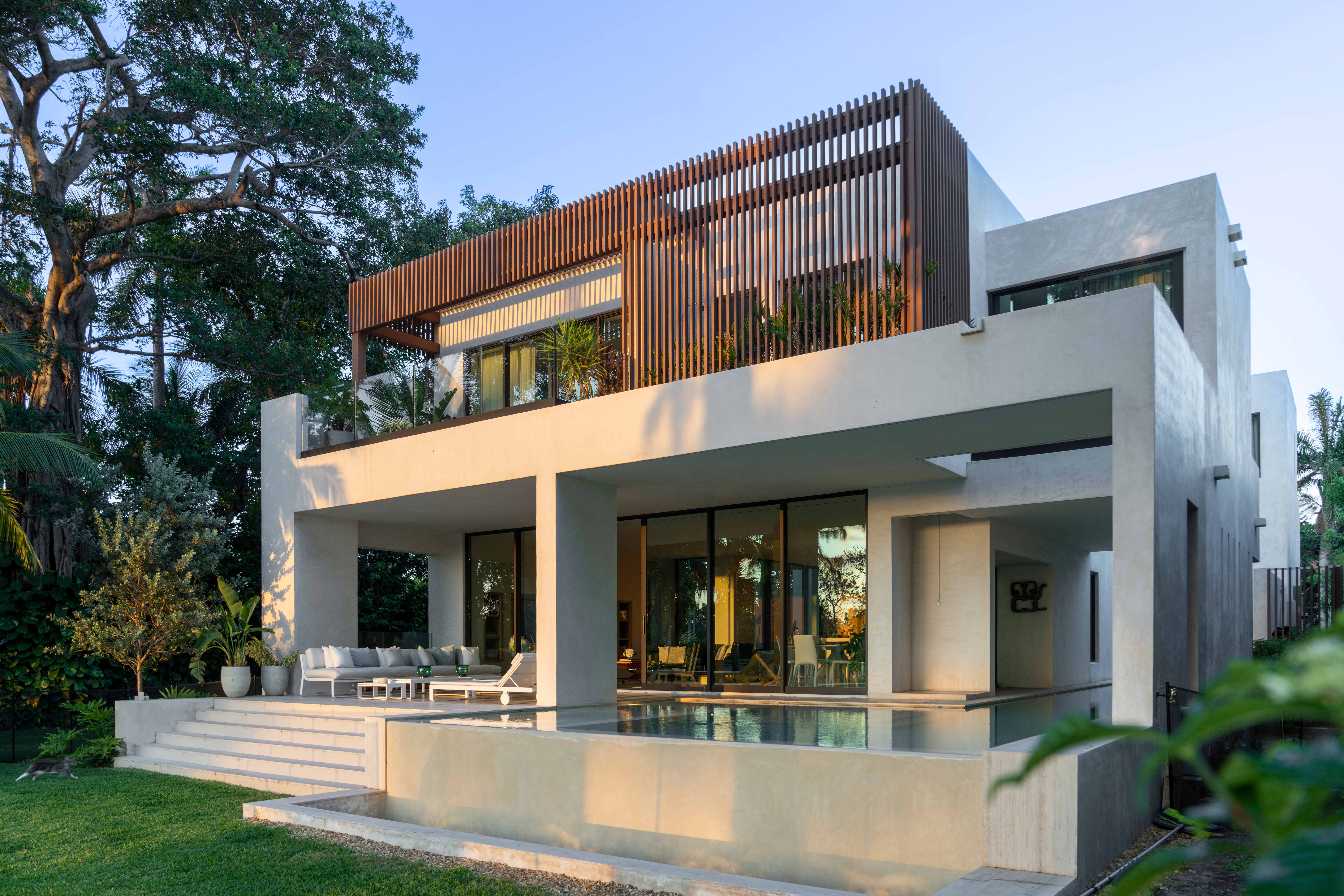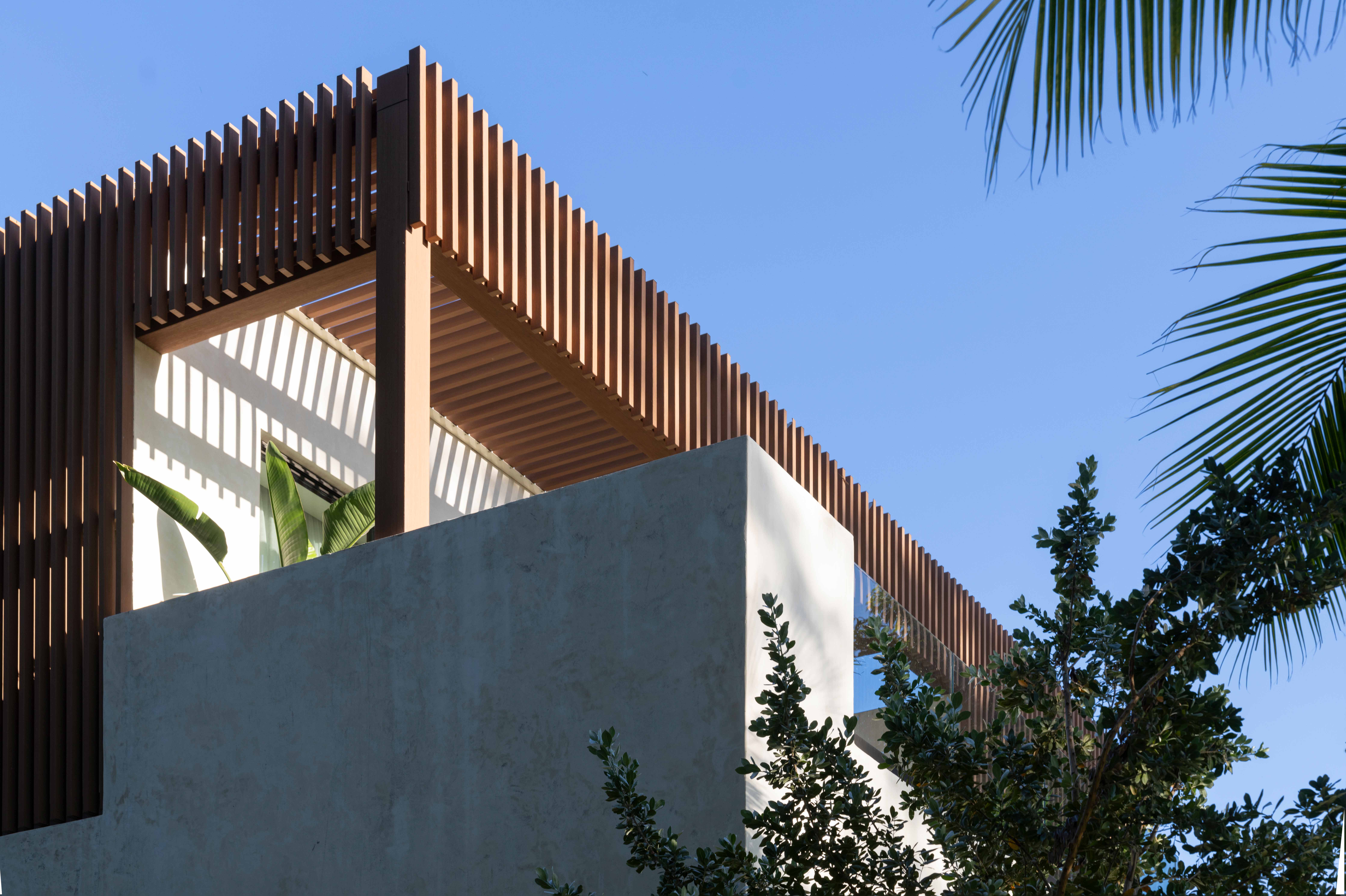 목재 스크린은 나무 그림자와 함께 벽면에 그림자를 드리워 하루 종일 표면이 끊임없이 변화하도록 만들었다. 내부는 대리석과 목재로 마감하여 공간에 따뜻한 분위기를 더했다.