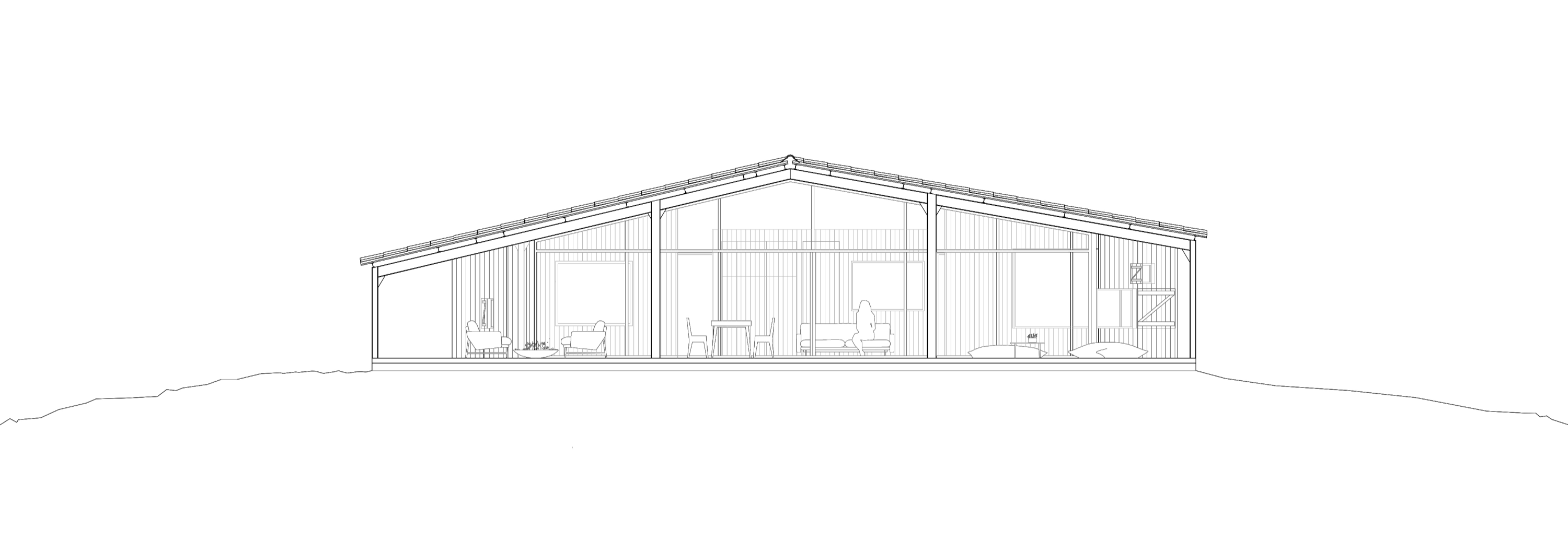 라 그랑 루즈는 마치 연극 무대처럼 설계되었으며, 매일 저녁 자연이 펼치는 장대한 공연의 무대가 된다. 정상에 자리한 집에서는 탁 트인 파노라마 전망이 펼쳐지며, 특히 서쪽 계곡을 향한 일몰은 황금빛과 붉은빛이 어우러져 황홀한 풍경을 감상할 수 있다. 기존 헛간의 강철 골조는 그대로 유지하되, 붉은색으로 칠했다. 이 색은 해질녘 하늘에서 영감을 받은 것으로, 집 전체에 따뜻한 분위기를 더하며 주변의 푸른 자연과 조화를 이룬다.