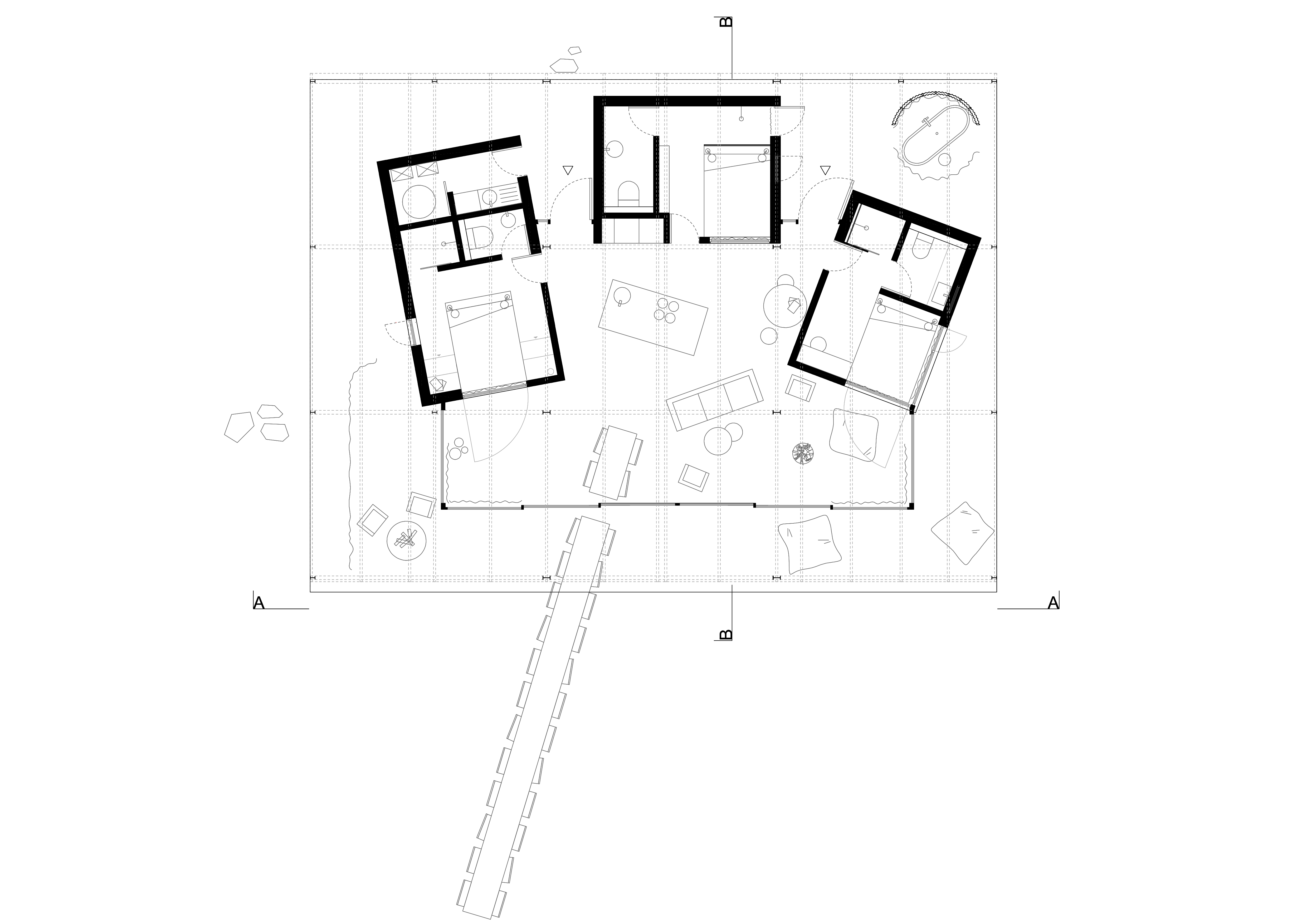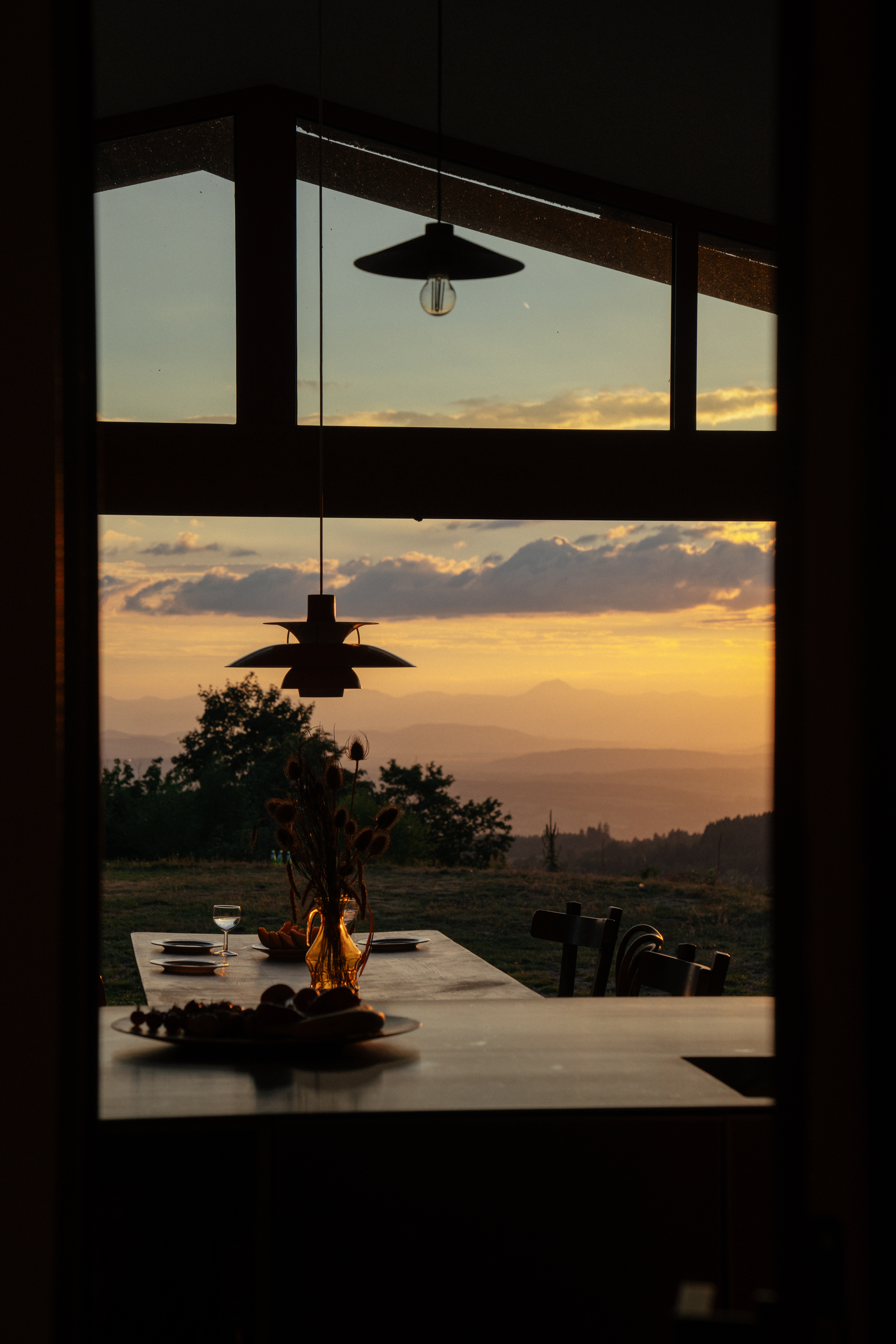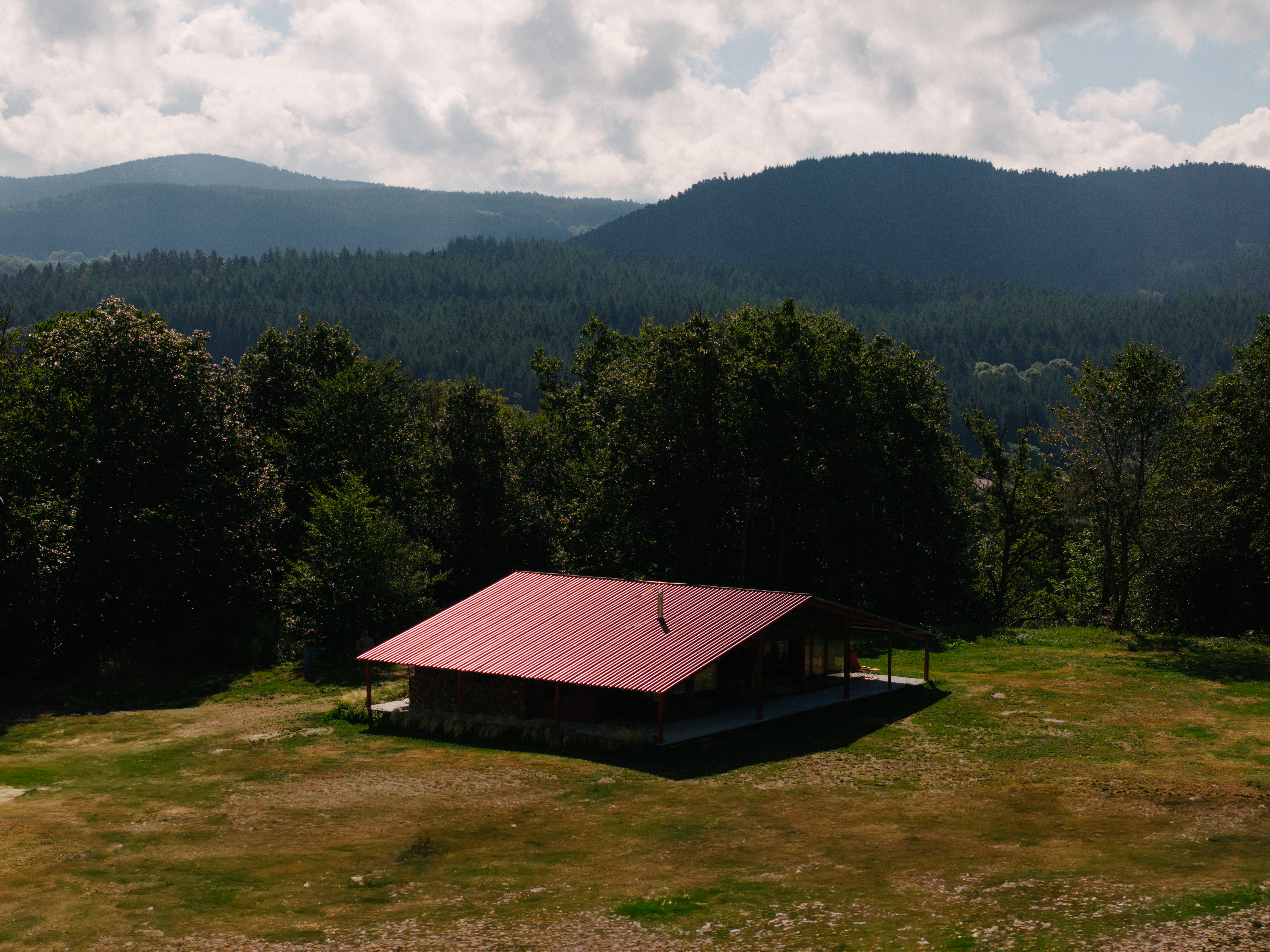 라 그랑 루즈는 마치 연극 무대처럼 설계되었으며, 매일 저녁 자연이 펼치는 장대한 공연의 무대가 된다. 정상에 자리한 집에서는 탁 트인 파노라마 전망이 펼쳐지며, 특히 서쪽 계곡을 향한 일몰은 황금빛과 붉은빛이 어우러져 황홀한 풍경을 감상할 수 있다. 기존 헛간의 강철 골조는 그대로 유지하되, 붉은색으로 칠했다. 이 색은 해질녘 하늘에서 영감을 받은 것으로, 집 전체에 따뜻한 분위기를 더하며 주변의 푸른 자연과 조화를 이룬다.