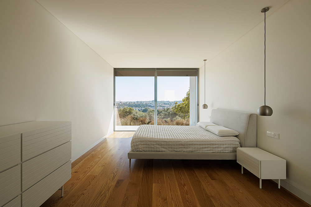 주택은 기하학적인 형태의 개구부를 통해 지역의 명물인 토레스 노바스 성과 세이라 데 아이레 산의 풍경을 품는다. 동쪽으로 솟아오른 공간을 향해 걸어가면 집의 주 출입구가 나타난다.