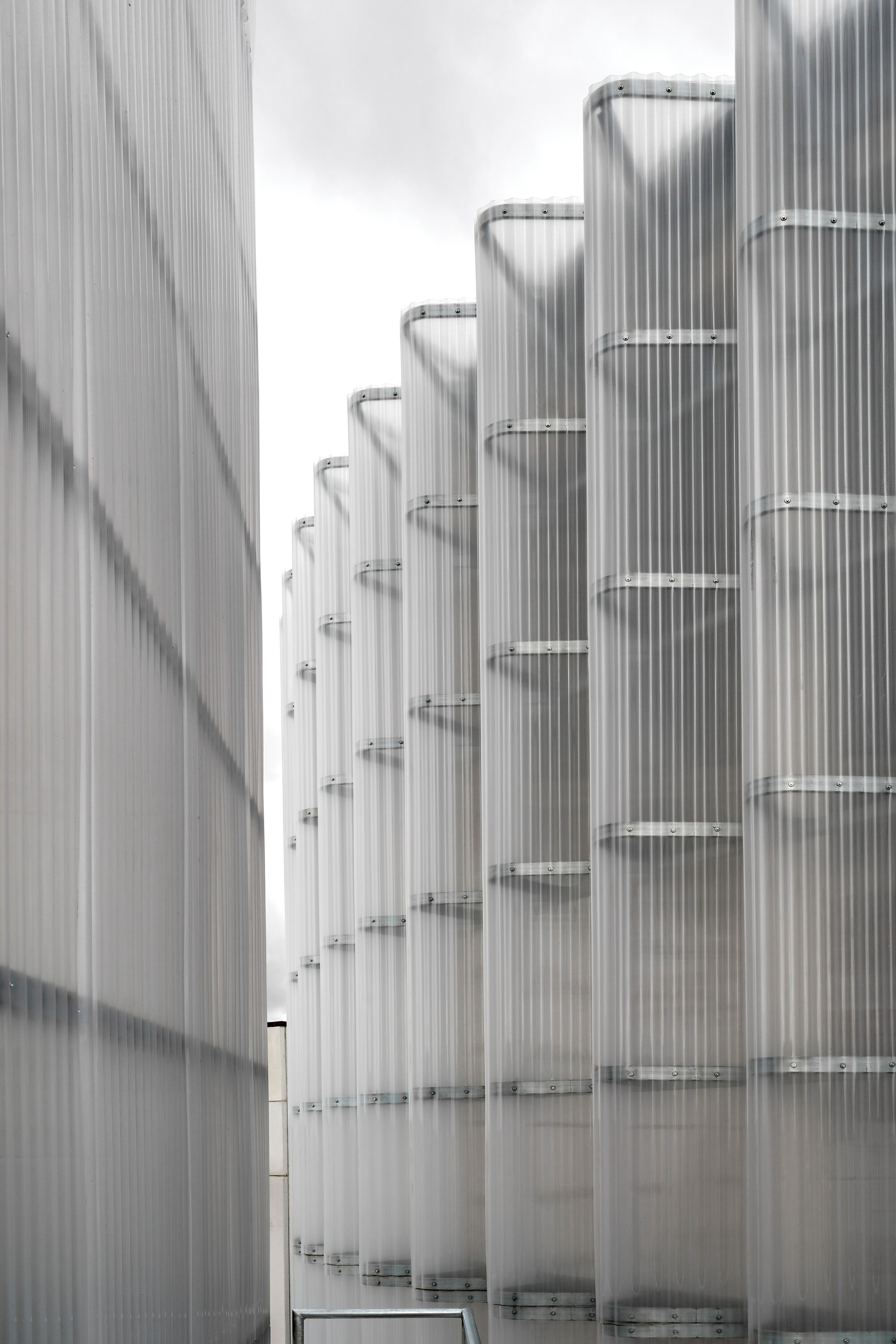 건물은 묵직한 콘크리트로 된 기반부와 가볍고 재활용 가능한 강철 및 플라스틱으로 만들어진 외피로 구성된다. 기반부는 모든 기계 장비를 지탱하며, 외부와의 연결을 담당한다. 이는 두 개의 큰 아연 도금 강철 게이트와 지하의 바이오매스 사일로를 통해 이루어진다. 콘크리트 기반부 내부에는 주변 기계들을 둘러싼 이동 동선이 있다. 강철과 플라스틱으로 된 외피는 산업 건물의 경제적 설루션을 재해석하여 지역 사회와의 상징적인 연결성을 지닌다. 다층의 골이 있는 반투명 폴리카보네이트 패널로 된 외벽은 섬세하게 도색된 강철 와이어 구조가 지지하고 있다. 별도로 분리된 타워는 필터링 과정을 거친 후 발생하는 하얀 연기를 배출한다.