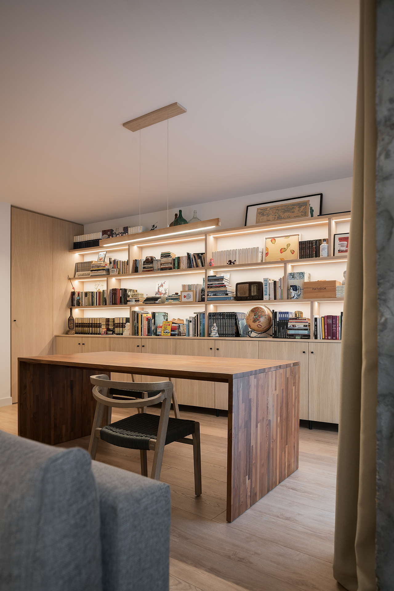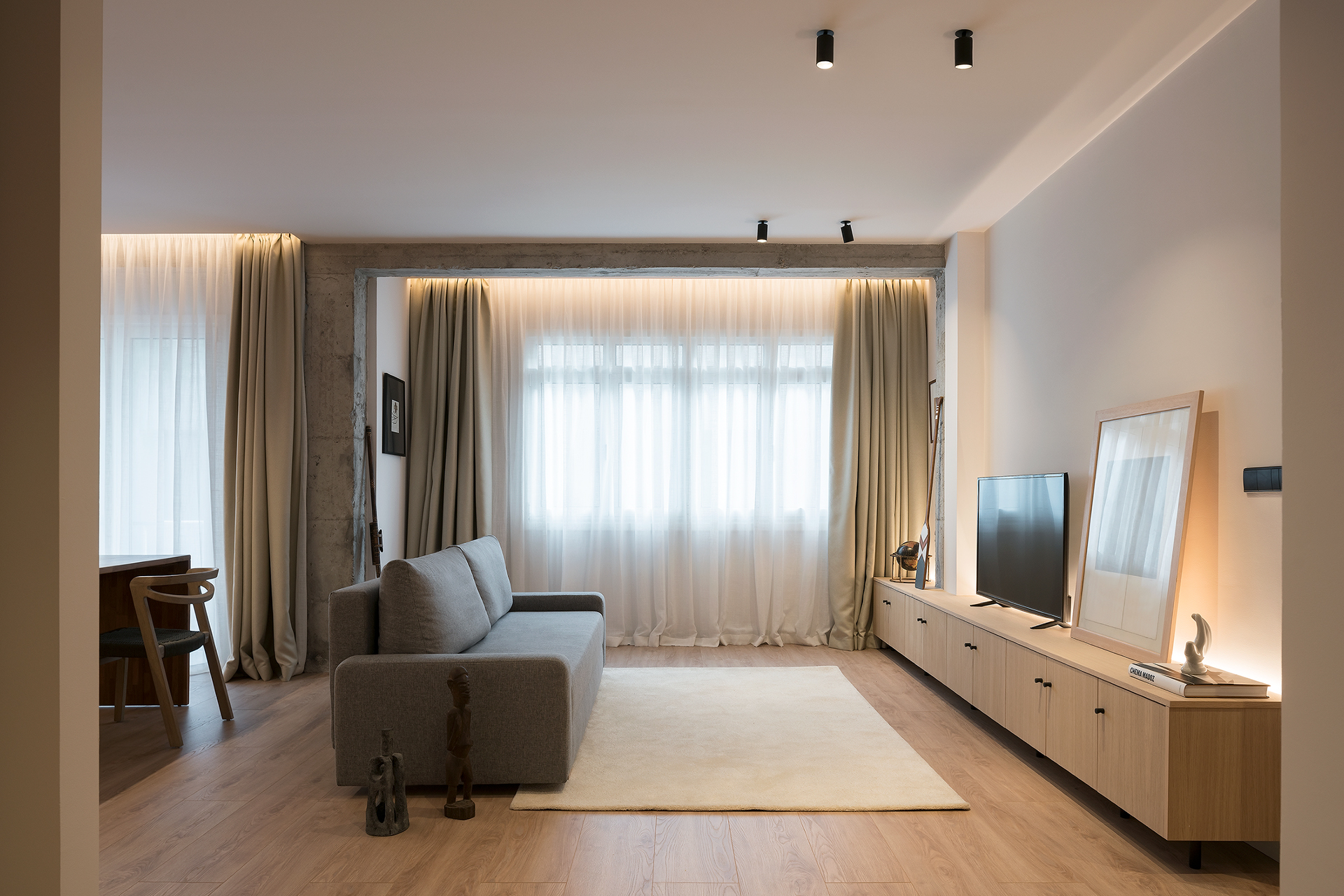 폰테베드라 중심부에 위치한 오래된 주택이 새롭게 탈바꿈 되었다. 리노베이션의 핵심은 간결한 평면 구성과 가구의 완벽한 통합이었다. 입구에서부터 이어지는 거실과 주방은 하나의 공간으로 통합되었고, 작은 복도를 지나 침실과 세탁실, 욕실이 배치된 공간으로 자연스럽게 연결된다. 모든 가구는 맞춤형으로 설계되어 공간의 일관성을 극대화했다.