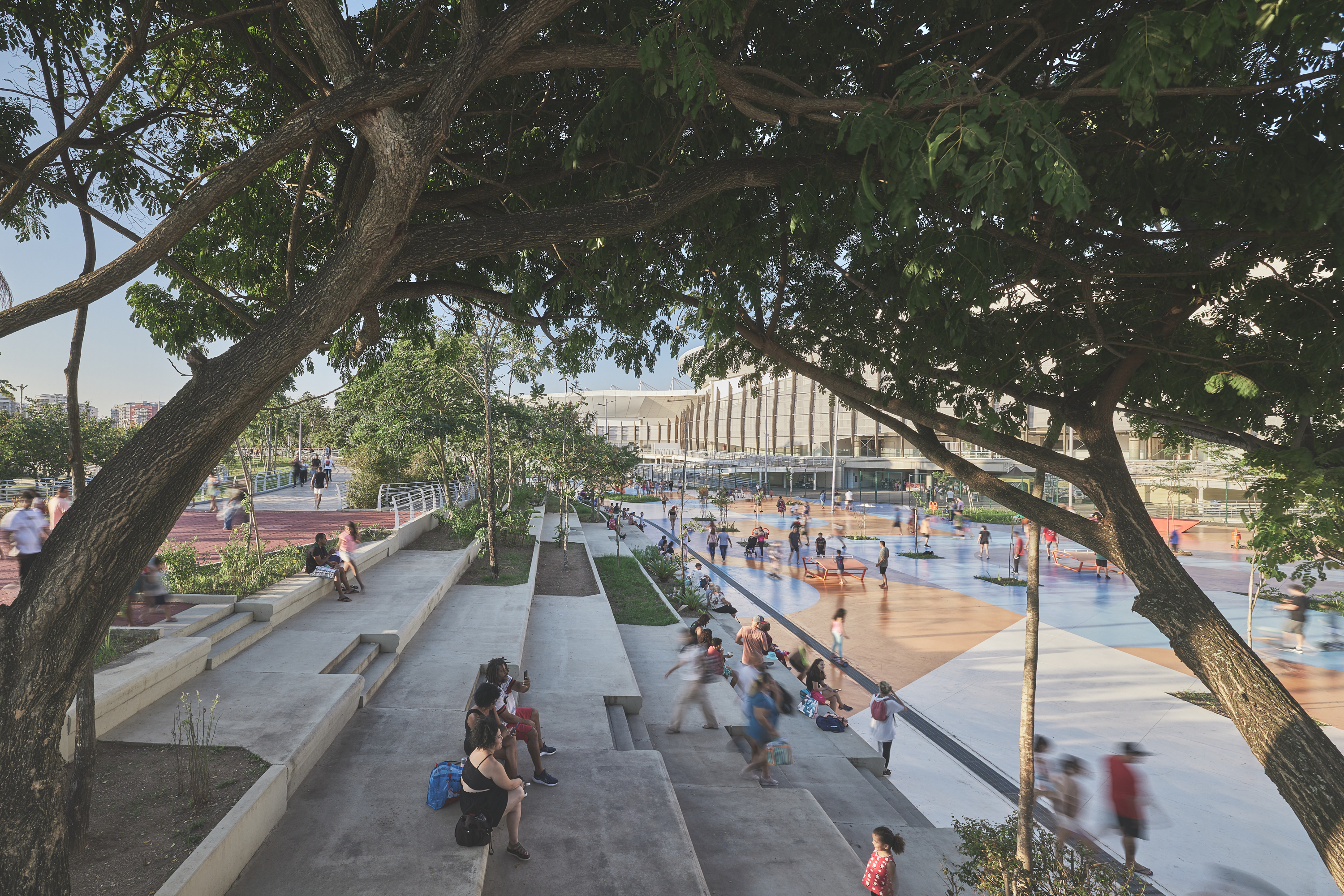 리우데자네이루에 있는 올림픽 공원은 2016년 올림픽 게임의 개최지였다. 공원에는 테니스 센터, 카리오카 아레나, 라이브 사이트 등 다양한 스포츠 시설이 있으며, 모든 시설은 ‘올림픽 웨이’라고 불리는 넓은 보행로를 중심으로 배치됐다. 이 보행로는 공원의 한쪽 끝에서 다른 쪽 끝까지 이어지는 주요 동선으로, 주변에는 가든 테라스가 조성되어 관람객들이 편리하게 이동하고 머물 수 있도록 설계됐다. 경기 기간 동안 많은 인파를 수용할 수 있도록 설계된 이 프로젝트는 관람객들의 편의를 최우선으로 고려했다.