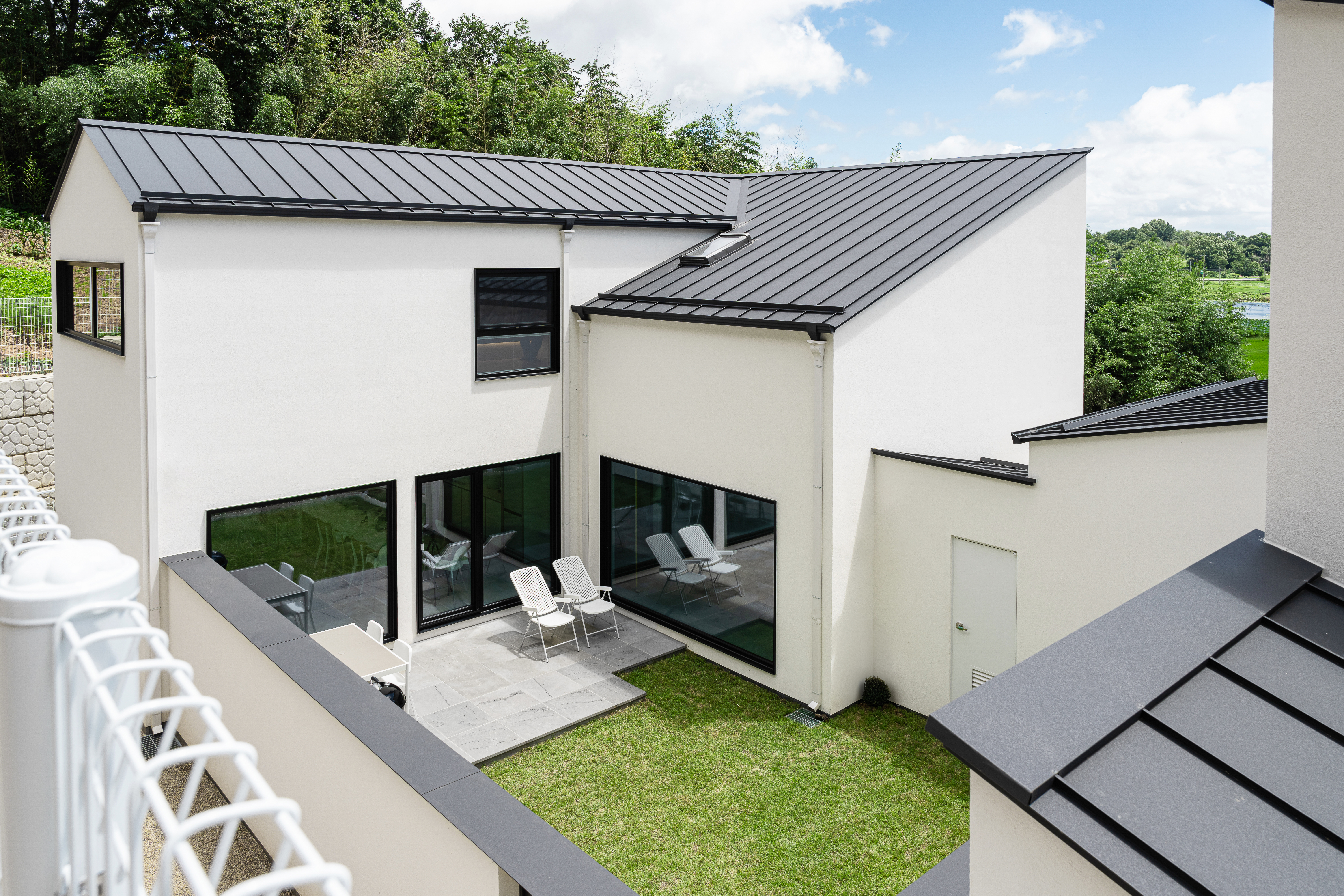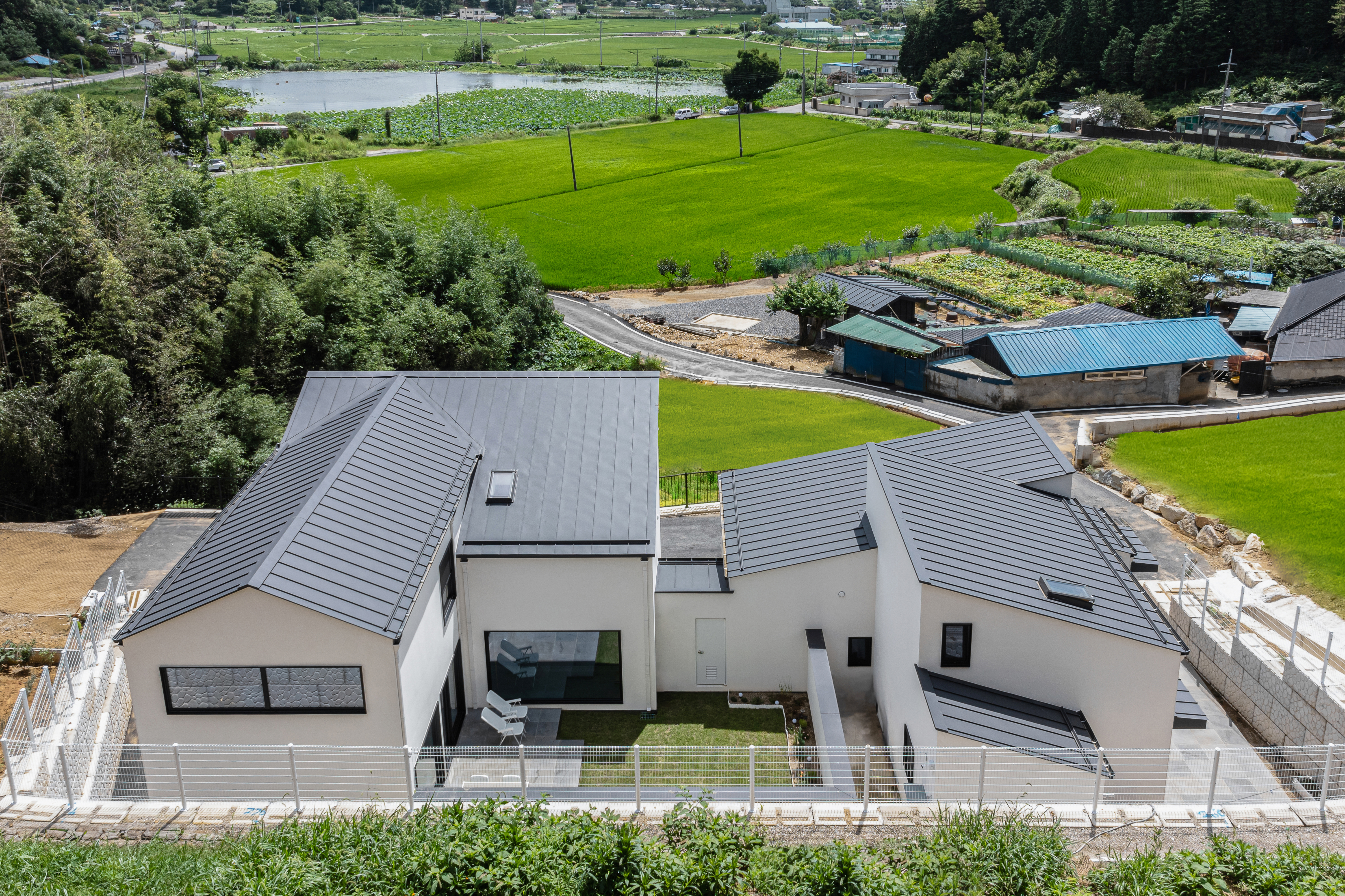 안마당을 중심으로 구분된 공간은 투숙객의 프라이버시를 보장하며, 경사 지붕은 자연과 조화를 이루면서 다채로운 입면으로 구성되었다. 1층의 큰 유리창은 자연광을 풍부하게 끌어들이고, 개방감 있게 구성된 거실과 주방은 많은 인원의 투숙객이 함께 모여 어울리기에 적합한 공간이 되었다.