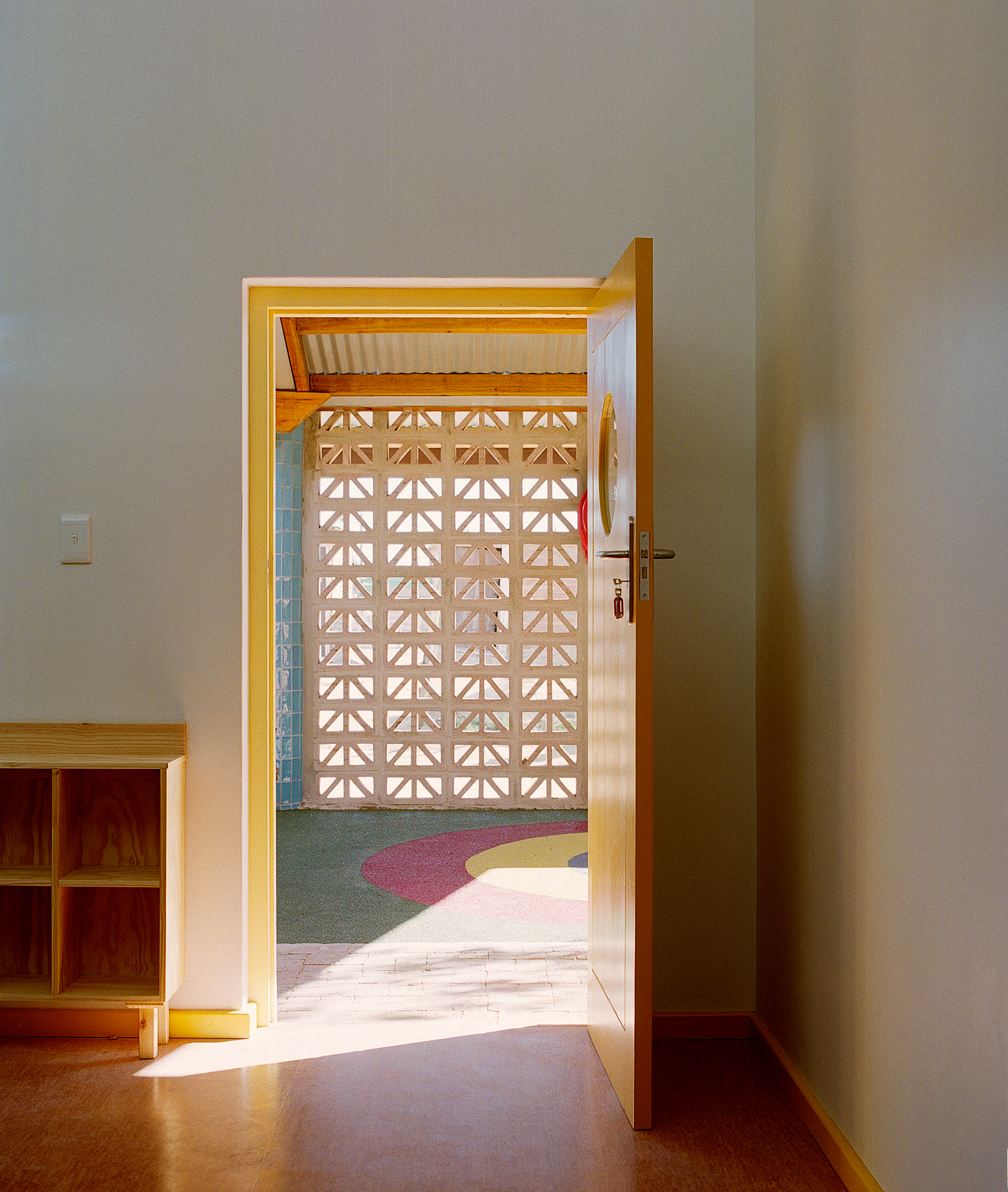 건물에 사용된 다양한 색상의 기둥은 아동친화적인 분위기를 조성하며 주변 환경에 생기를 불어넣는다. 북쪽 경계에는 브리즈 벽돌 벽을 사용해 놀이 공간과 거리를 구분했다.