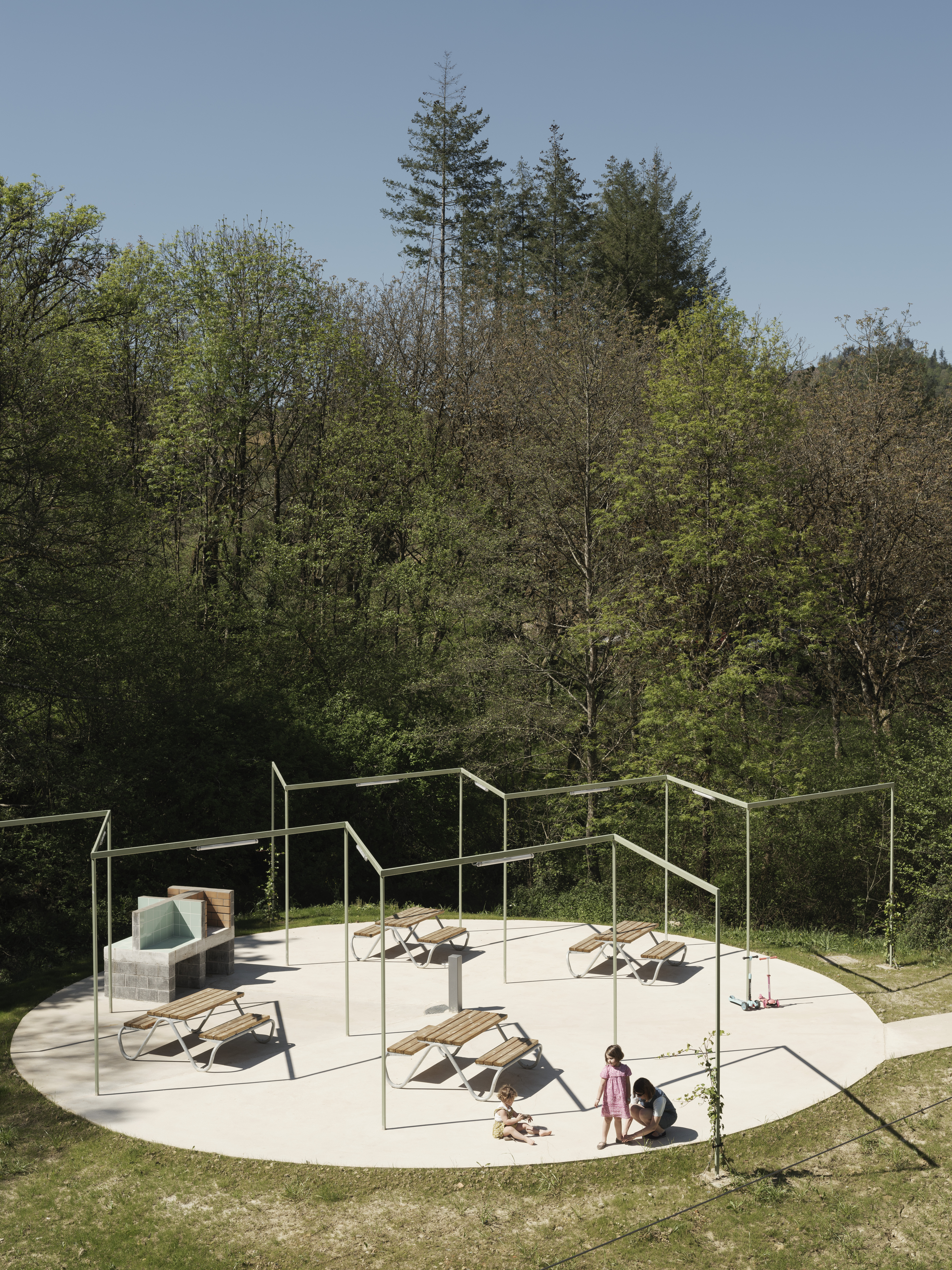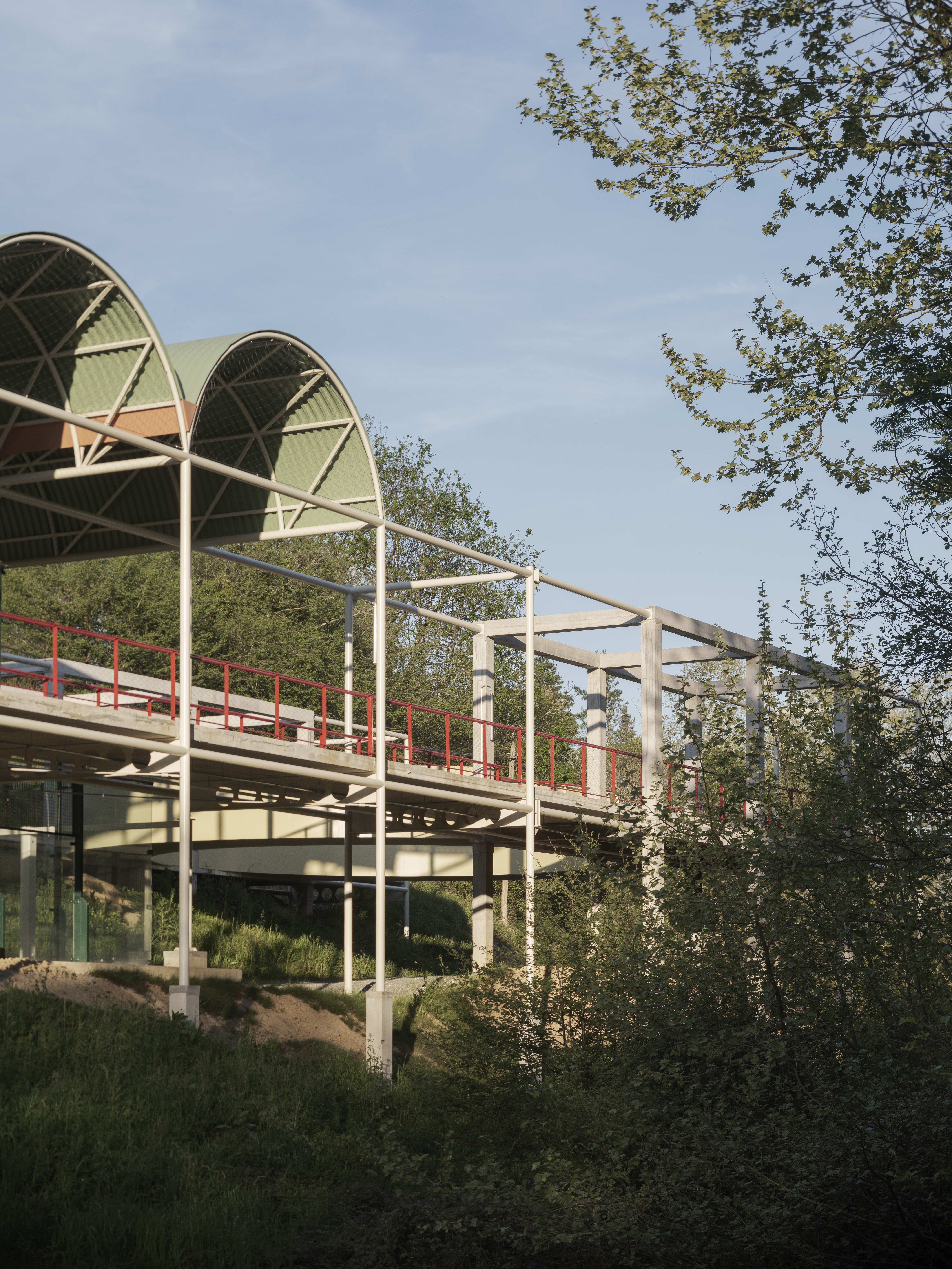 이 프로젝트는 단순한 체육 시설 조성을 넘어, 개천 주변의 생태계를 복원하는 것에도 중점을 둔다. 과거 오수 처리장으로 인해 훼손된 환경을 되살리고, 토착 식물과 동물이 다시 자리를 잡을 수 있도록 생태계를 재생하는 것이 목표다. 공원이 단순한 운동 공간을 넘어 자연과 공존하며 환경 교육의 장으로도 활용될 수 있도록 설계됐다. 건설 과정에서도 지속 가능성을 최우선으로 고려했다. 불필요한 철거를 최소화하고, 철거된 자재는 자갈이나 포장재로 재활용하여 폐기물을 줄였다. 또한, 깊이 파묻는 기초 공법 대신 표면 기초 공법을 활용하여 시공 절차를 단순화하고, 비용 절감과 환경적 영향을 최소화한다. 마지막으로, 모듈형 및 공업화된 건설 방식을 적용해 공사 기간을 단축하고, 전반적인 효율성을 극대화하면서도 현장 시공이 환경에 미치는 영향을 최소화했다.